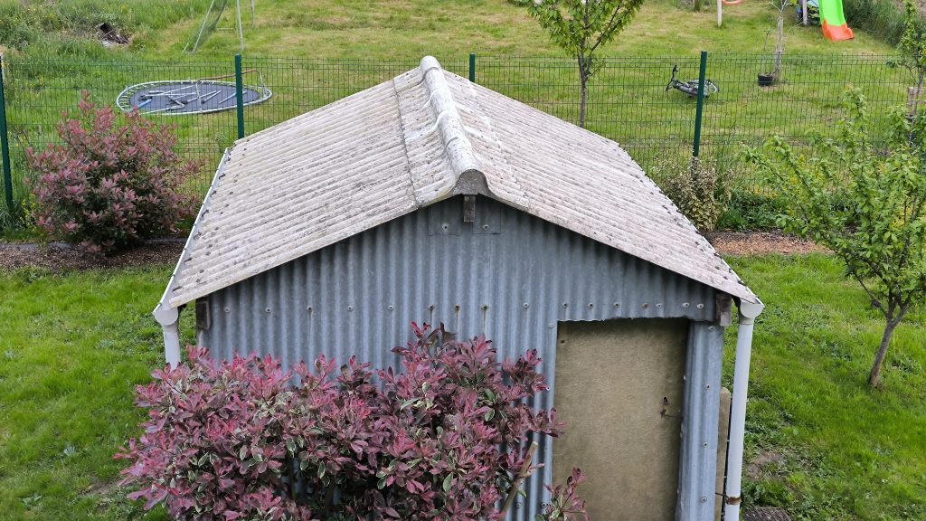 Avec les beaux jours je me suis occupé du toit de l’abri de jardin qui est … comment dire… vivant tellement il y a de mousse.