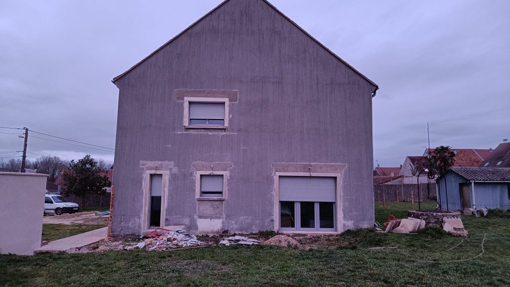 Vive Avril et le début des journées un peu plus chaudes… comment ça on est que mi-février ? avec 14 degrés ? ah. Bon Eh bien ça sera l’occasion de penser un peu à la future terrasse. Elle sera sur le pignon Sud de la maison, et fera le lien entre le comblanchien (revêtement du sol devant la maison) et le puits.