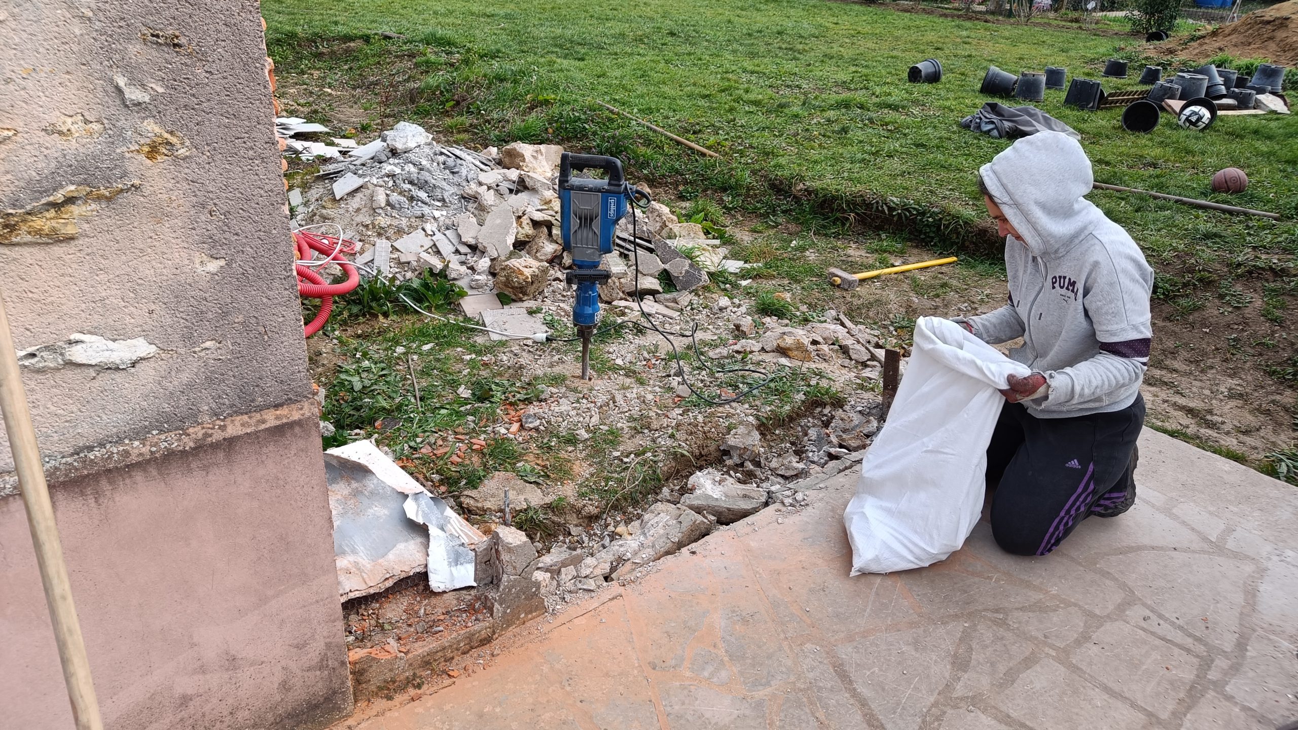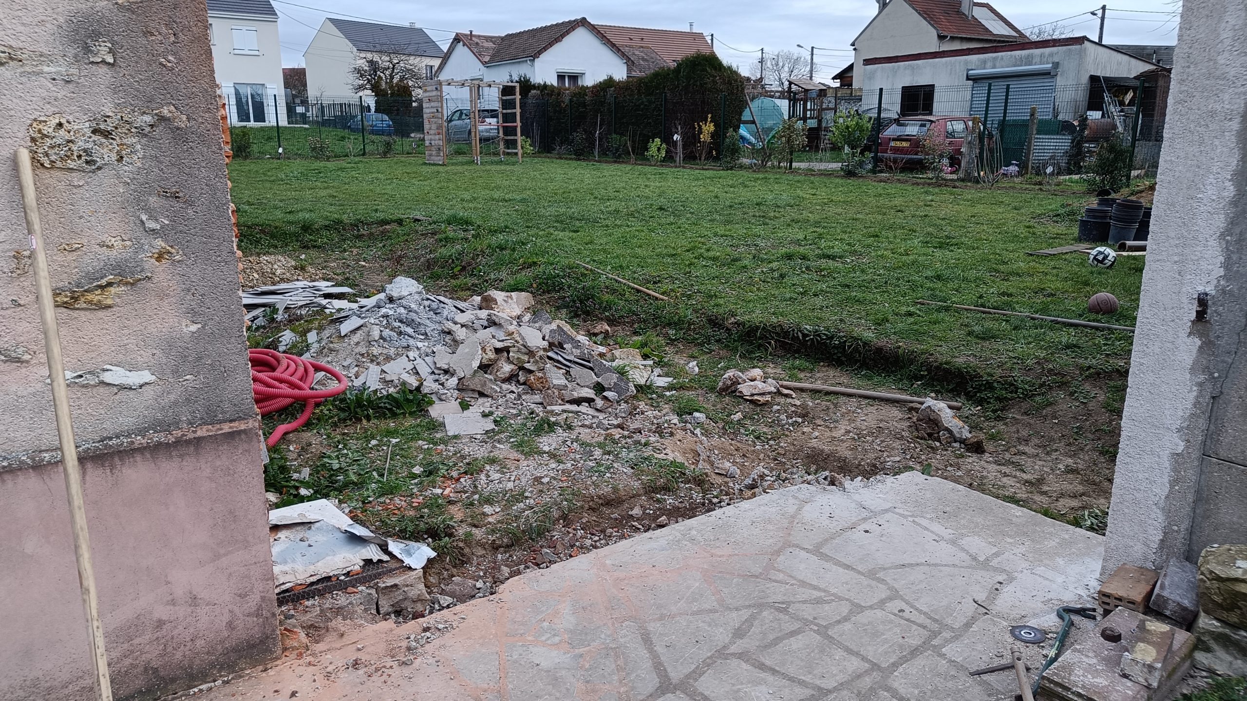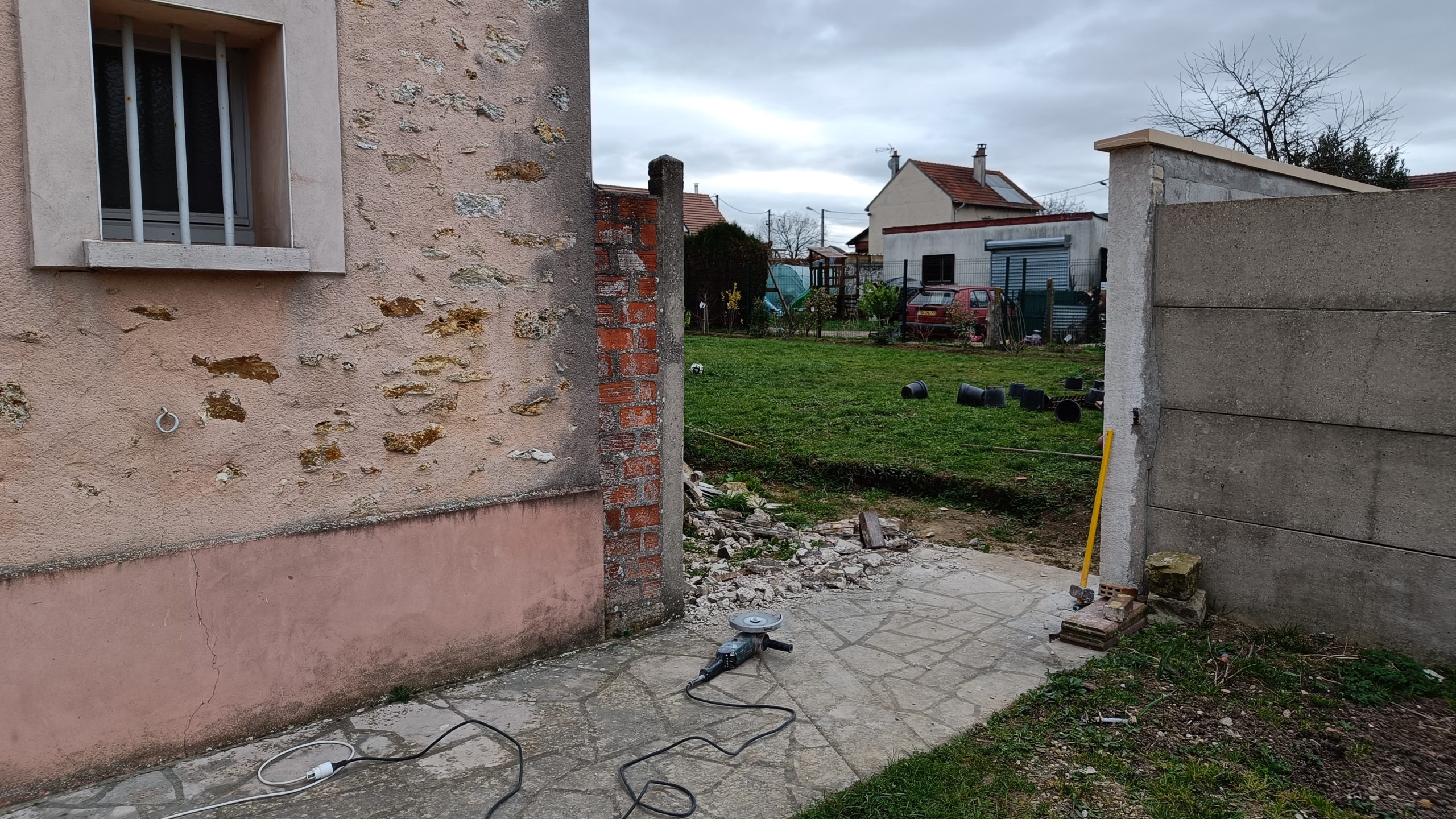 Ça tombe bien, tonton est passé ce matin, du coup on a pu démonter le mur en plaques de béton et j’ai pu finir le reste au marteau piqueur…