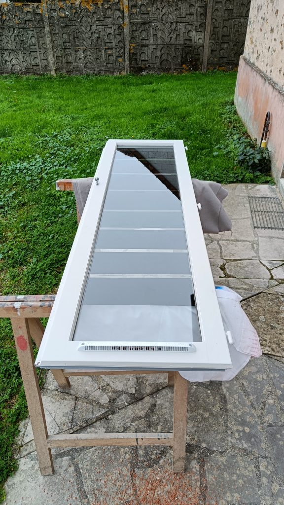 Je me suis donc attelé à poser des aérateurs sur les fenêtres des chambres, bureaux et salon, soit 8 aérateurs. C’est assez rapide à faire.