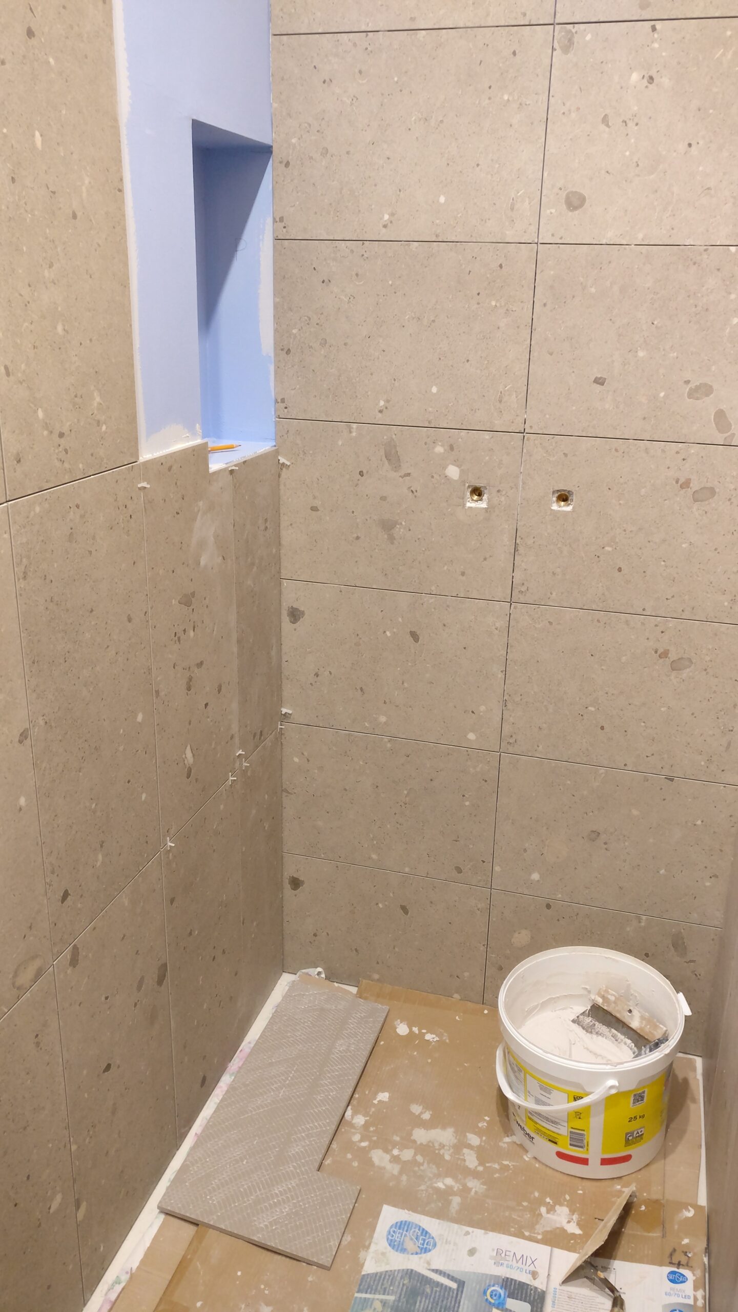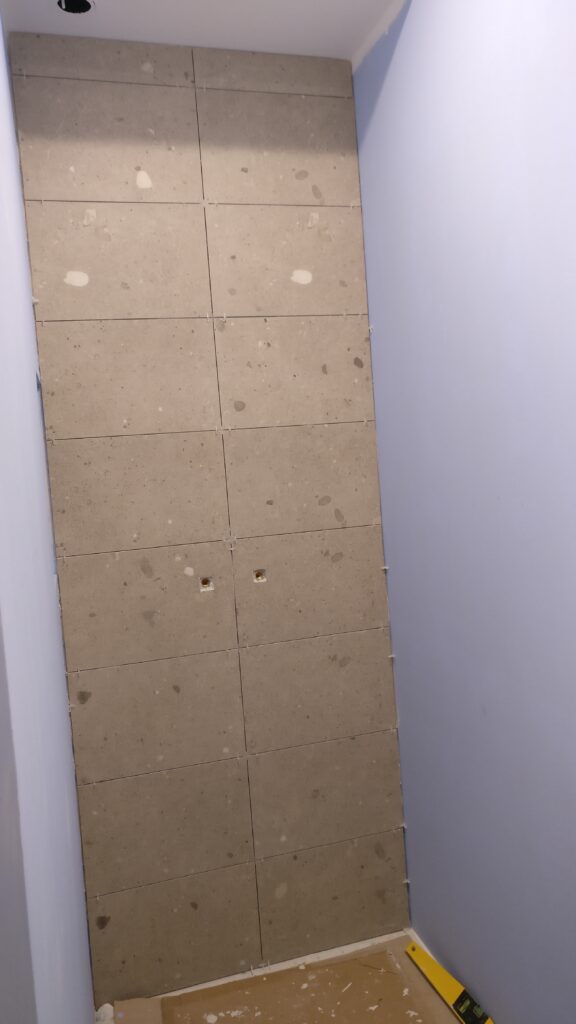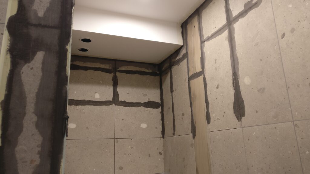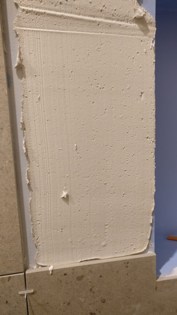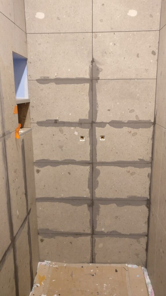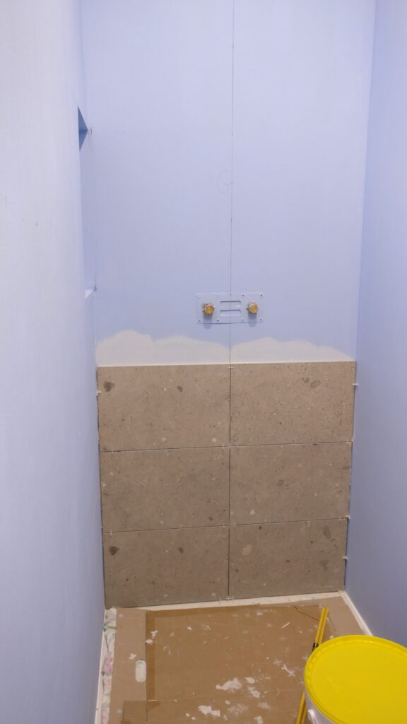 Je passe ensuite au mur de droite quand on est dans la douche, c’est à dire le mur que l’on voir quand on est dans la salle de bain :