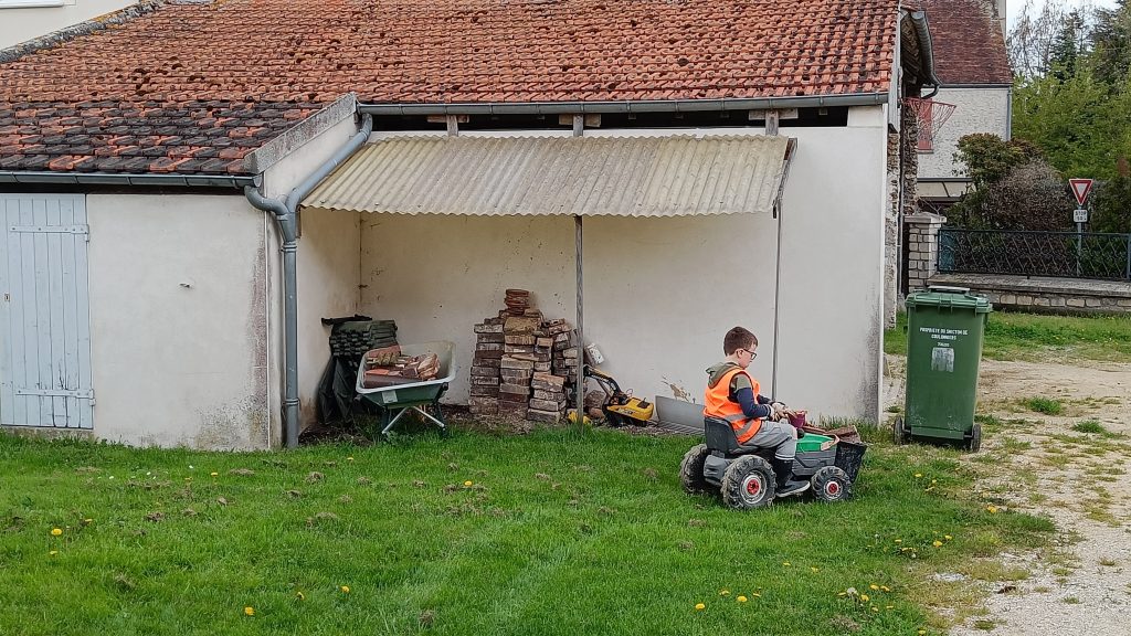Au final j’avais mis le composte à cet endroit mais il ne va pas y rester. On va agrandir la zone et y mettre de la bonne terre pour faire des plantations de tomate par exemple. Je vous montrerai quand ça sera fait (cet été je pense).