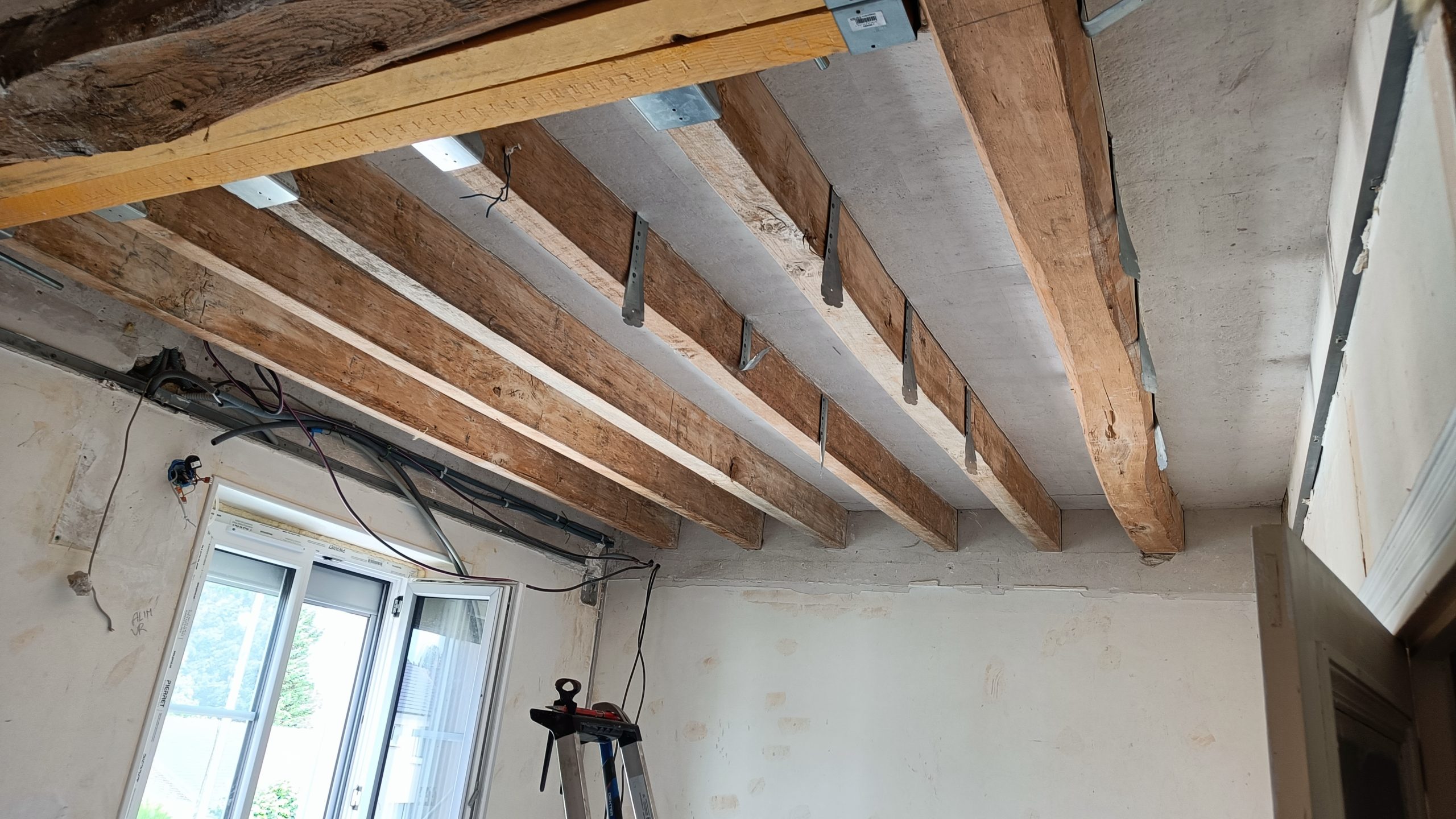 Le plus galère la dedans a été de retirer les suspentes clouées. il y avait 3 clous par suspente et une suspente par solive. Ça m’a pris un bon bout de temps mais c’est fini et propre.