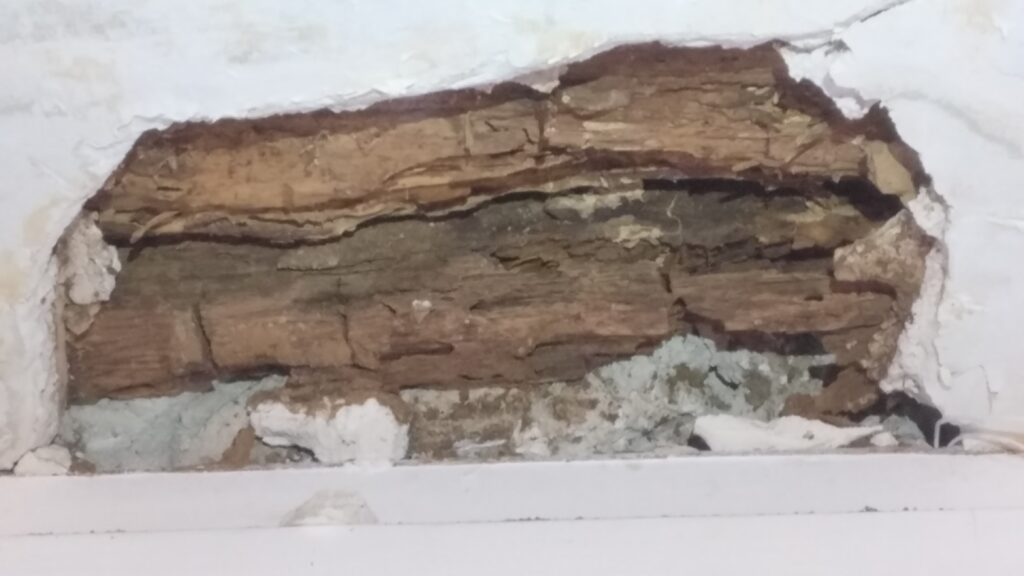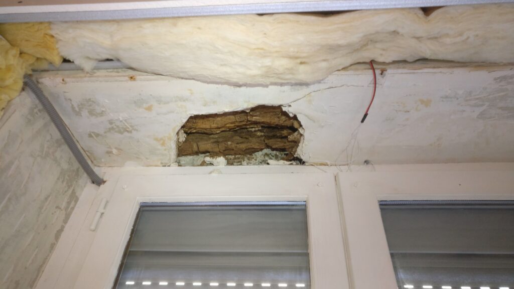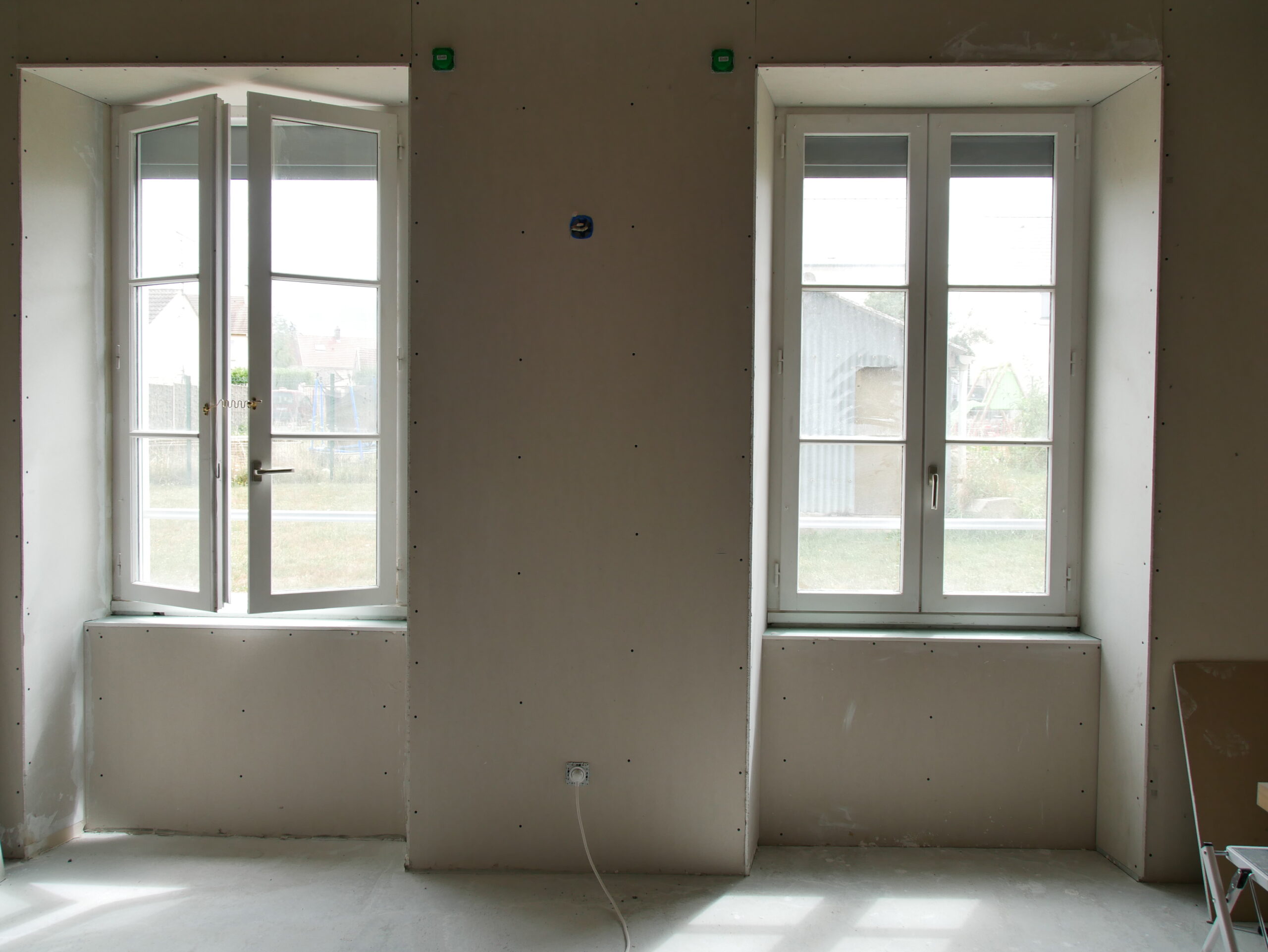 Par contre pour la fenêtre de droite j’ai eu un petit soucis… j’avais commencé à faire le piochage des murs pour faire tenir le MAP il y a 15 jours.. mais je suis passé à travers le plâtre existant et je me suis rendu compte qu’une partie du linteau en bois était pourri. J’ai dû tout ouvrir et gratter. J’en ai profité pour passer une petite couche de xylo… Le maçon présent m’a dit que niveau solidité c’était encore bon donc…. gogogo 🙂
