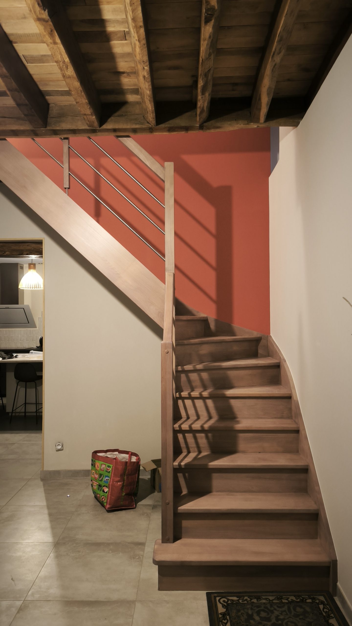 Ça y est, cette fin d’année 2025 nous permet enfin de remplacer l’escalier « temporaire » par le vrai escalier pour monter au premier. Enfin.
