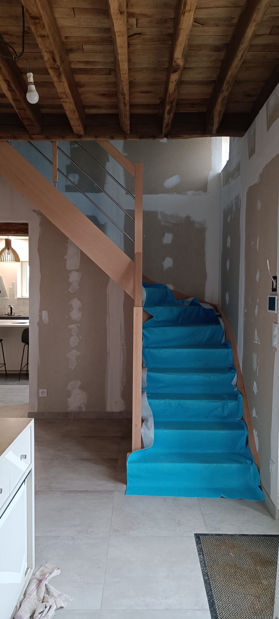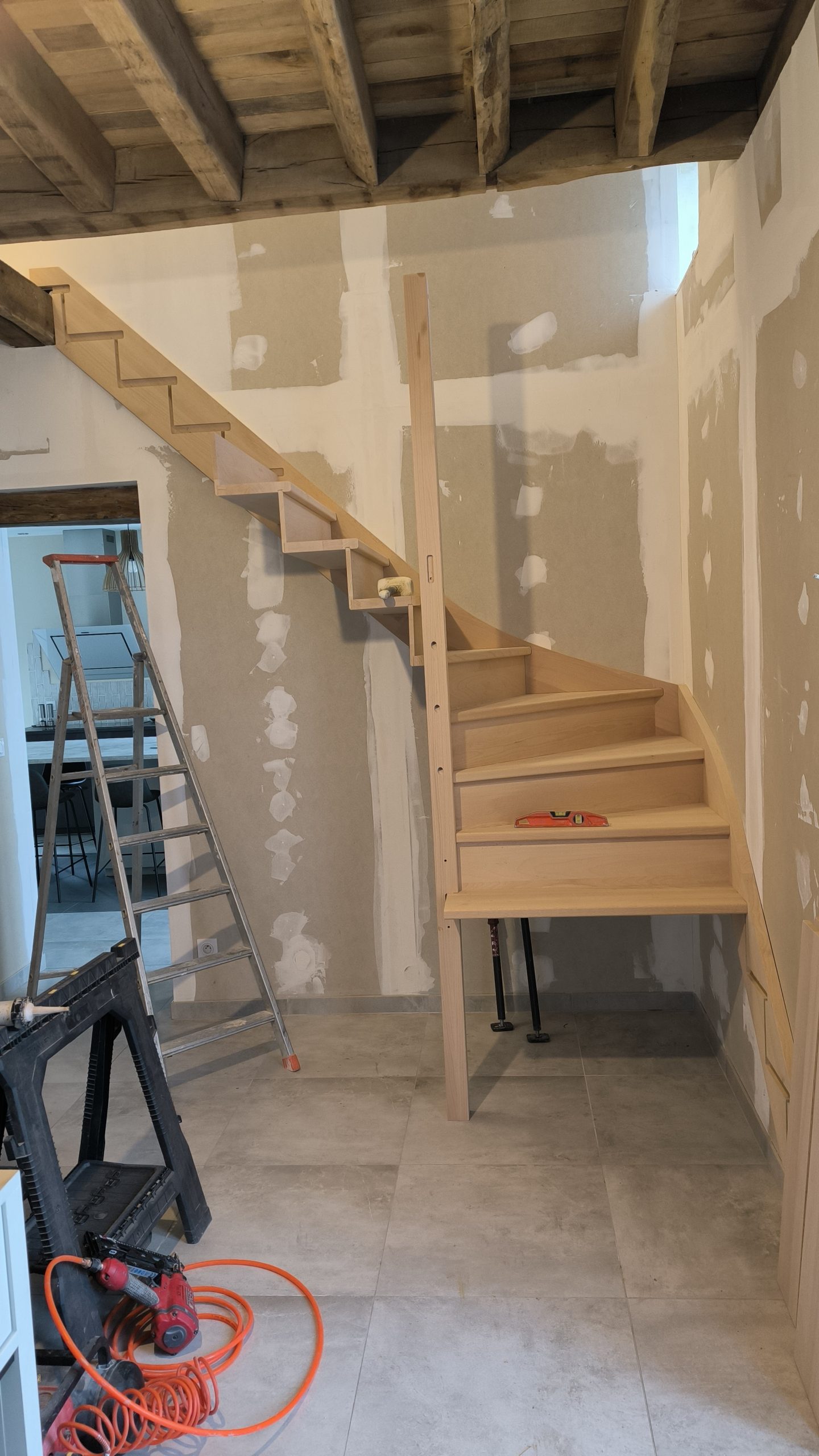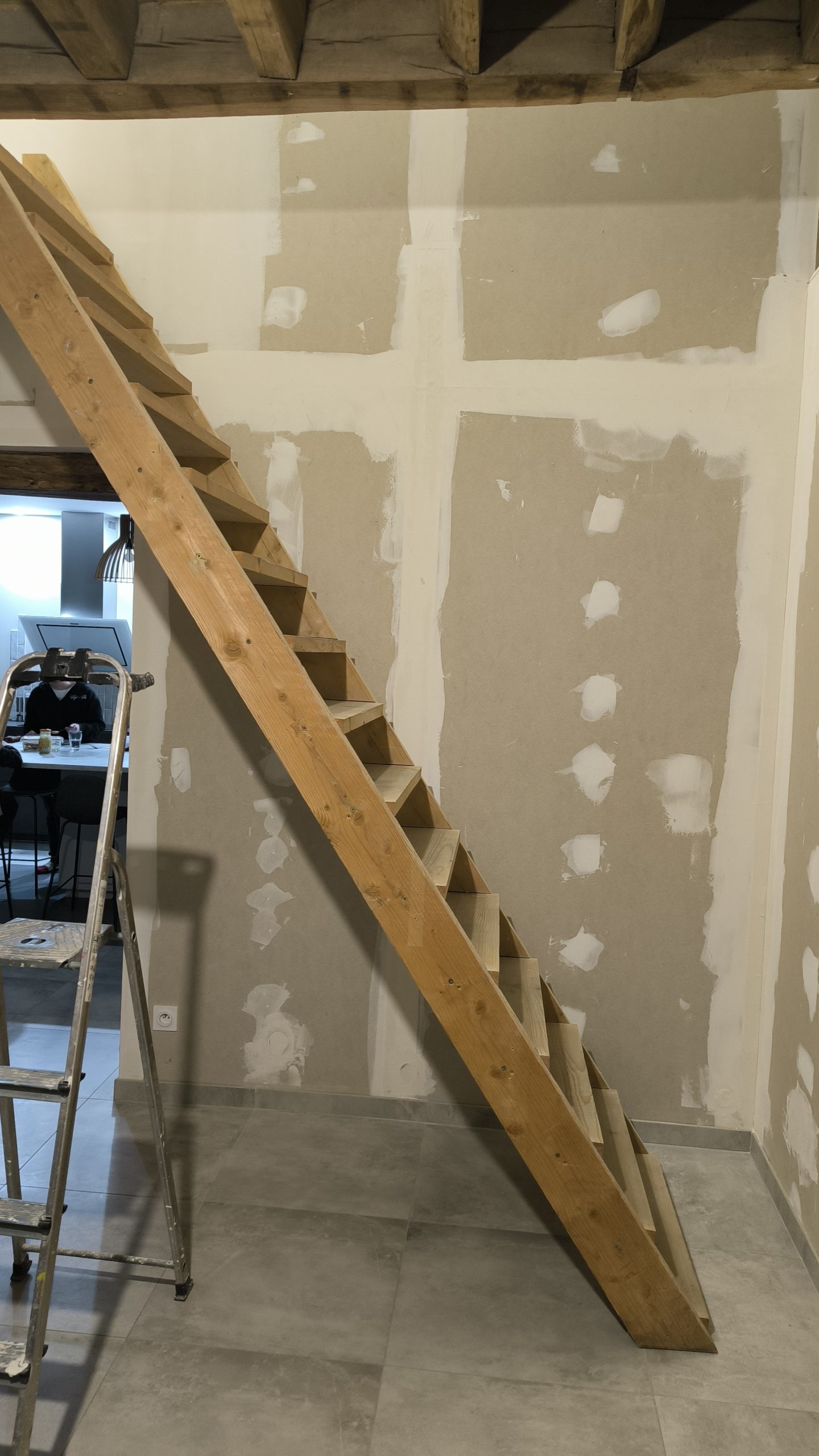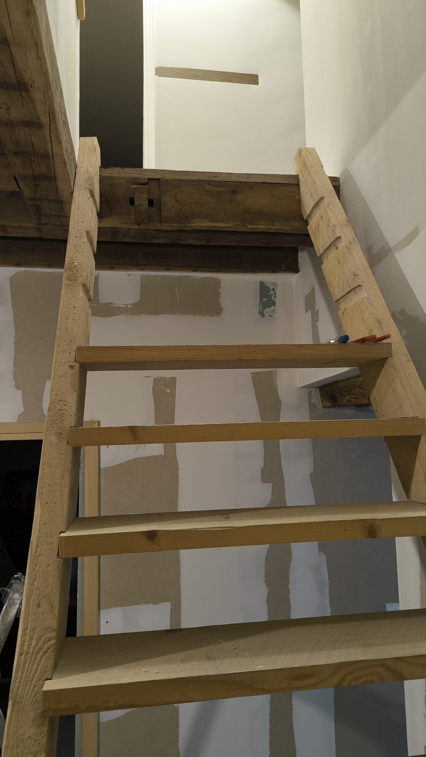 Alors là ici j’ai anti-daté l’article que je rédige début Avril 2026. Mais la pose de l’escalier s’est en fait déroulée en plusieurs étapes et demandé l’intervention de 2 artisans.