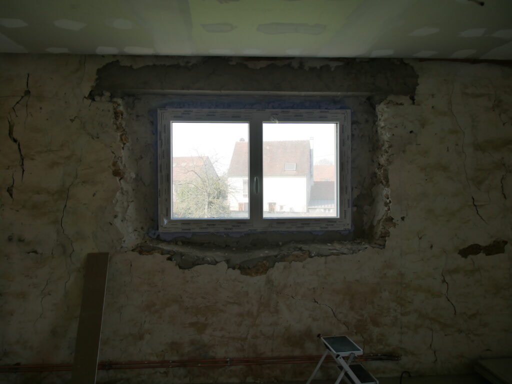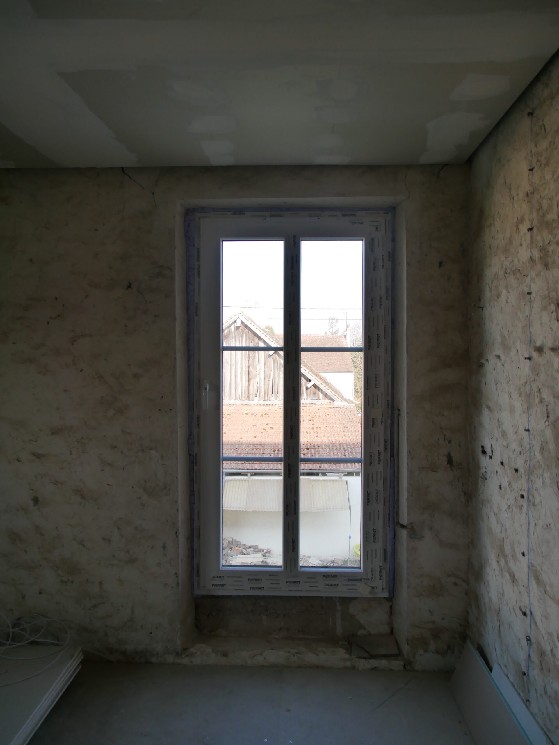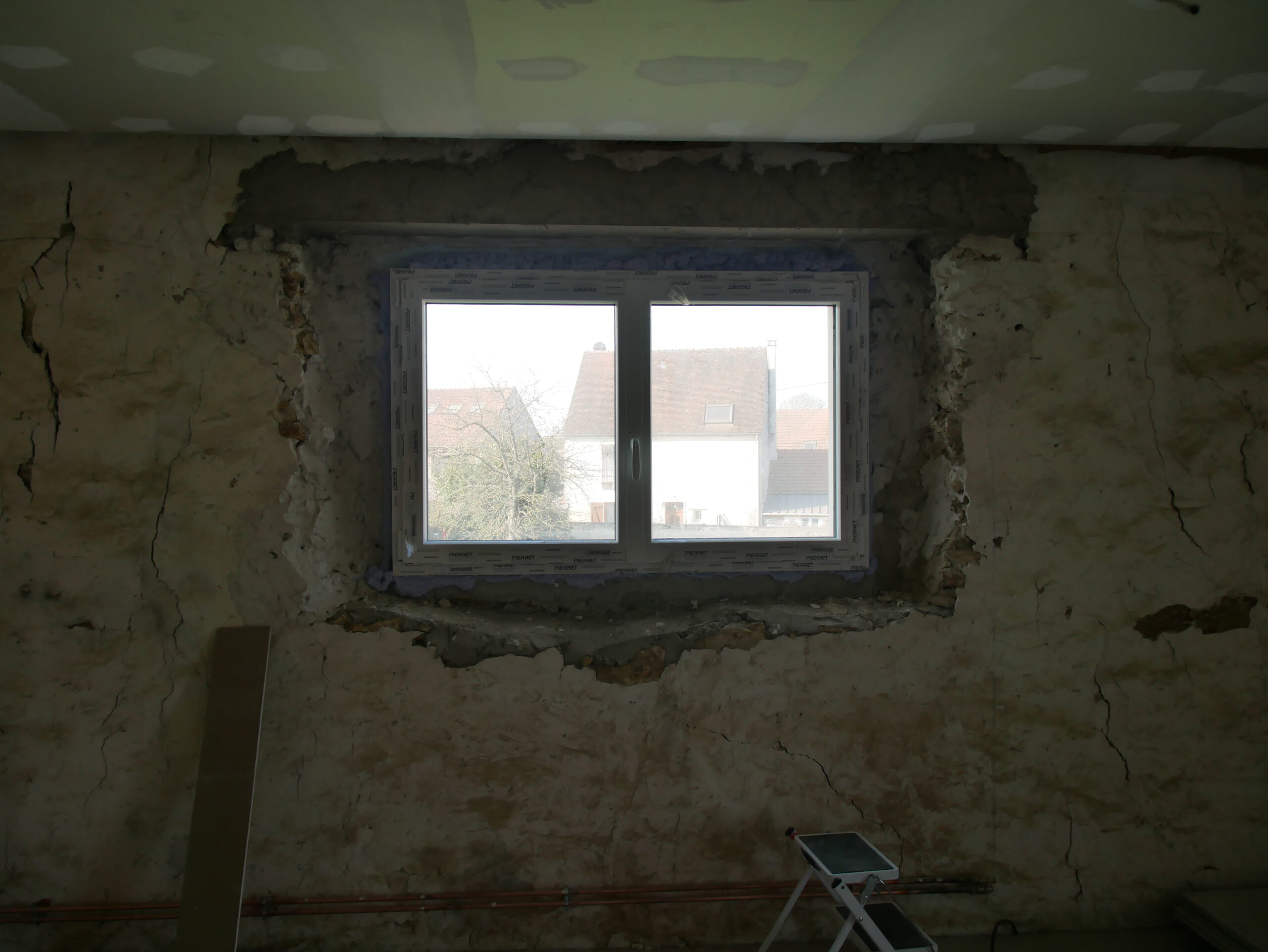 Et la lumière fut grâce aux poseurs des fenêtres de la mezzanine. Et voilà un épisode de fini… enfin il reste à reprendre 2 tableaux sur une fenêtre (pas droit) mais toutes les fenêtres à changer/créer l’ont été.