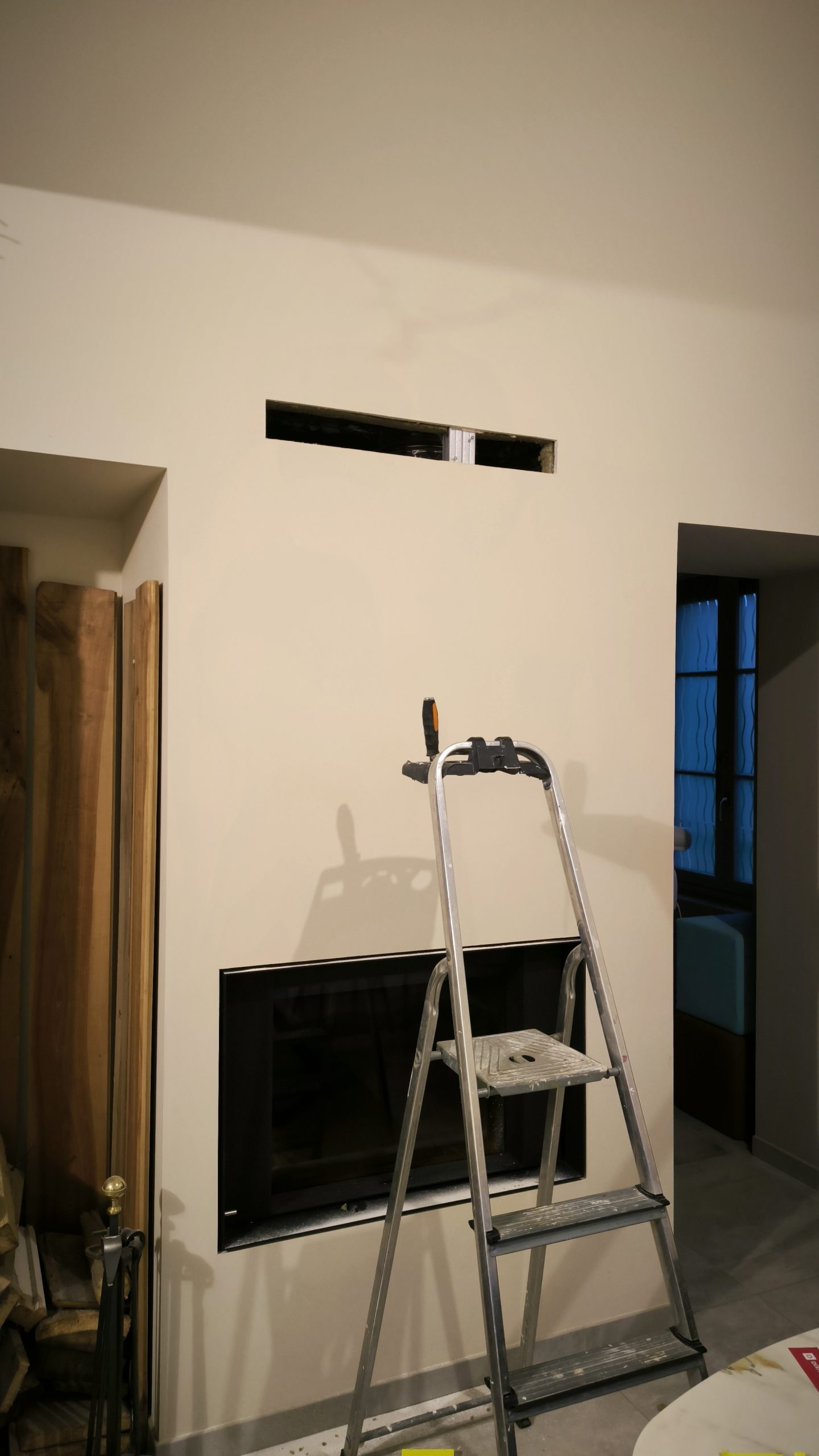 Le résultat est pas mal du tout. Maintenant il reste à faire la même chose du côté du salon. Mais pourquoi ? parce que côté salon l’ouverture est plus haute et que dans ce cas l’air chaud montant, c’est cette dernière qui est privilégiée et que la nouvelle sortie d’air dans la salle à manger risque… de servir d’entrée d’air ce qui n’est pas le but attendu.
