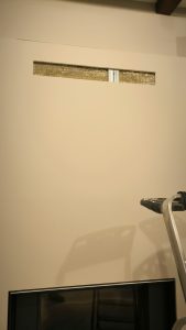 C’est cette dernière option que nous avons choisie en ajoutant une grille du côté de la salle à manger. Grâce aux photos prises quand j’ai posé le placo (cf article) j’estime que je peux poser la grille au plus haut à 2m25 du sol. J’aurai un montant à découper mais il n’est là que pour tenir l’isolant… maintenant qu’il y a le placo qui est vissé dessus je vais pouvoir le couper sans problème. Reste à ne pas abîmer ni le mur ni la peinture….