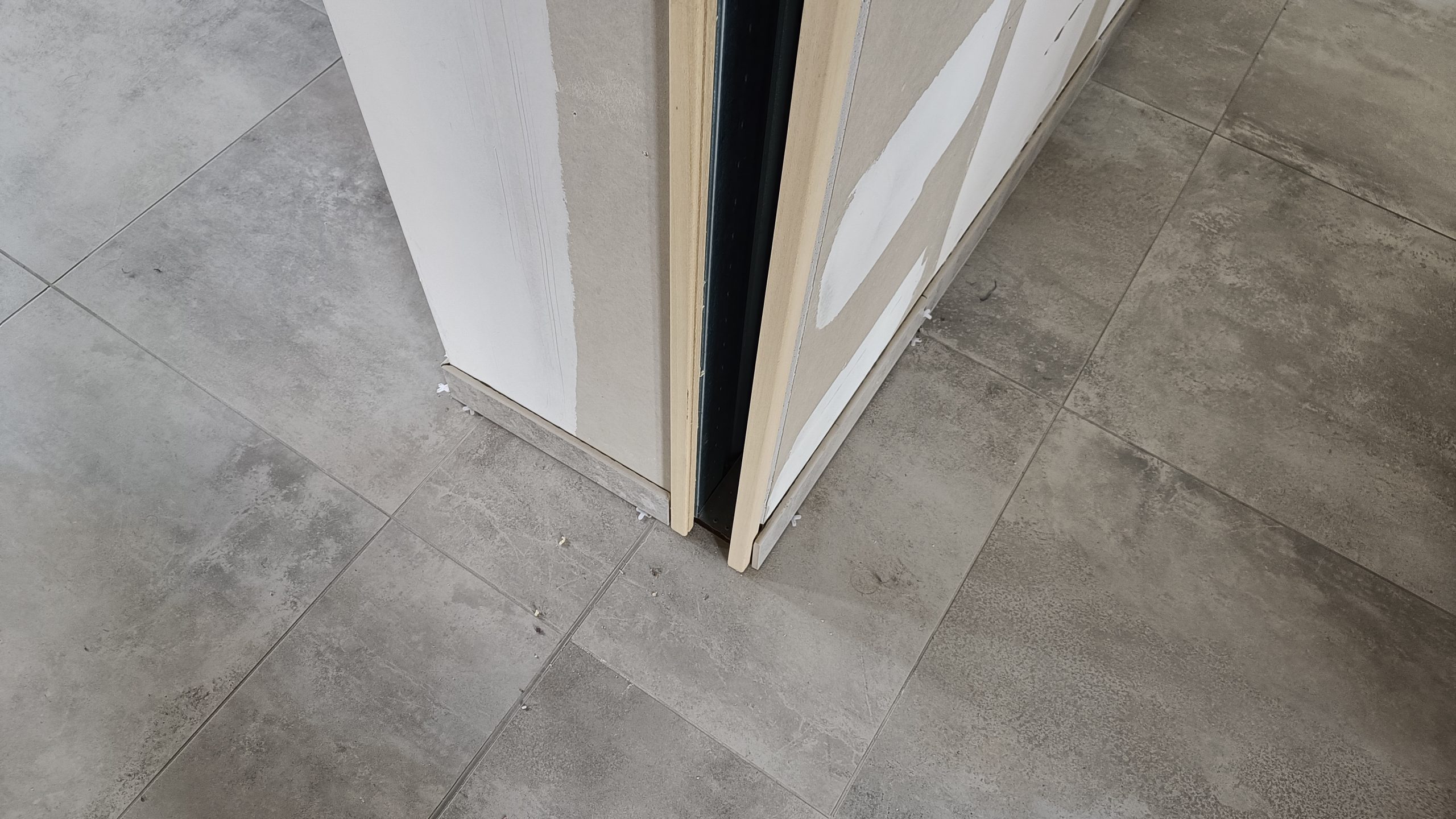 Quatrième étape : Façonnage et collage des plinthes de carrelage manquantes.