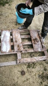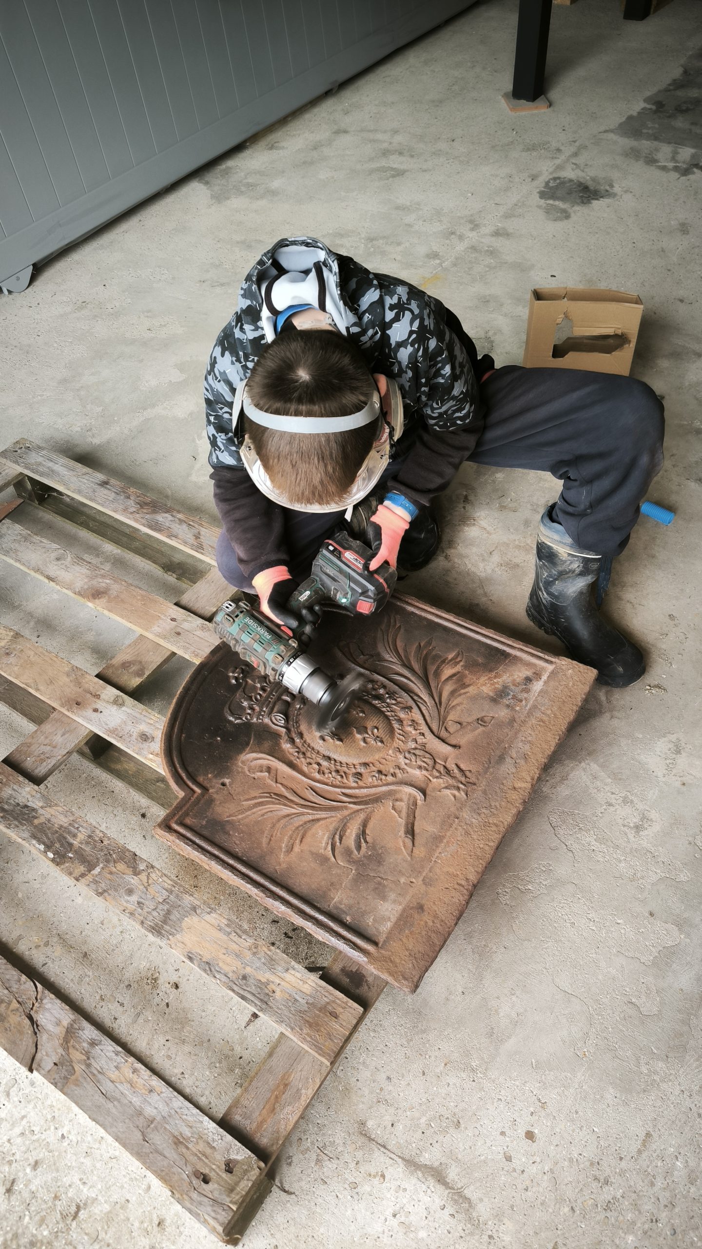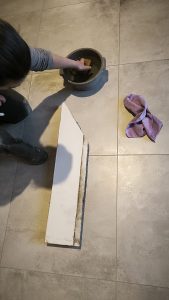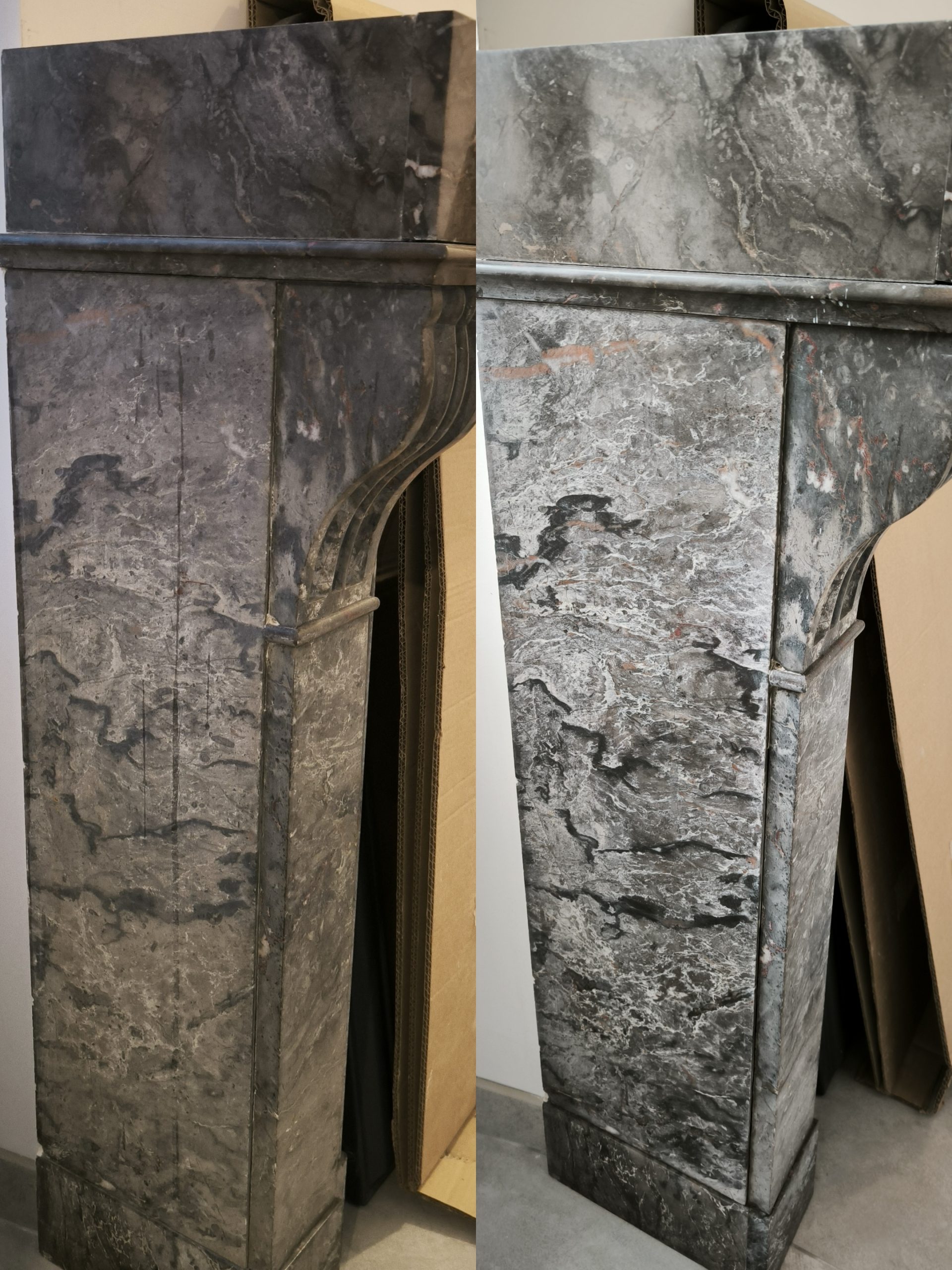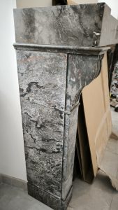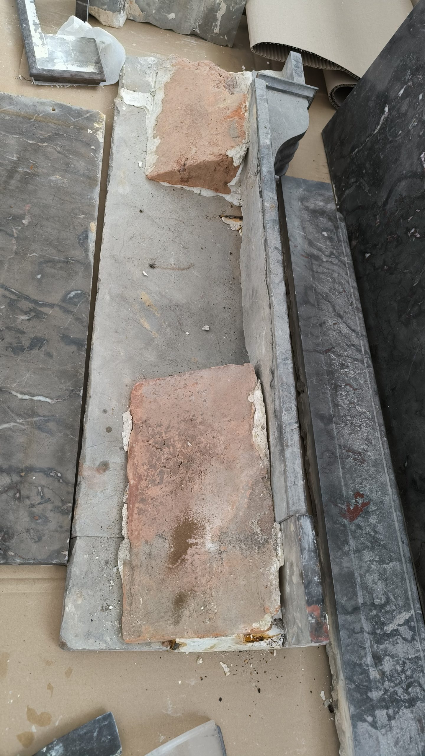 Étape suivante : Remise en état des marbres. Simple mais long : ponçage, ponçage et ponçage (à l’eau). Du grain 400 au grain 10 000.