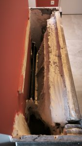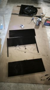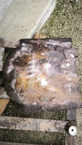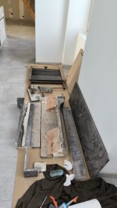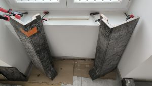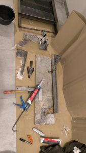 Et réinstallation du tout : enfin sans le plateau… car comme j’ai pas mal bourré en plâtre pour tenir le tout, j’ai du laissé ouvert pendant plus de 3 semaines que ça sèche. Puis pose du plateau (collé lui aussi au plâtre).