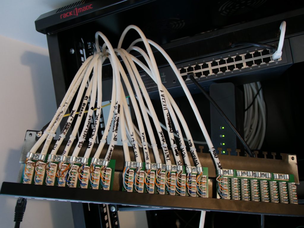 2) certaines prises sont en giga, d’autres en 100Mb (donc pb de branchement du cable sur les bornes 4,5,7 et/ou 8) voir ne fonctionnent pas (donc pb de brochage sur les bornes 1,2,3 ou 6… ou c’est mon cable en trop). Je regarde ça semaine prochaine. Et je vais au passage penser à prendre une photo du patch panel si j’arrive à le sortir de la haut sans tout défaire.