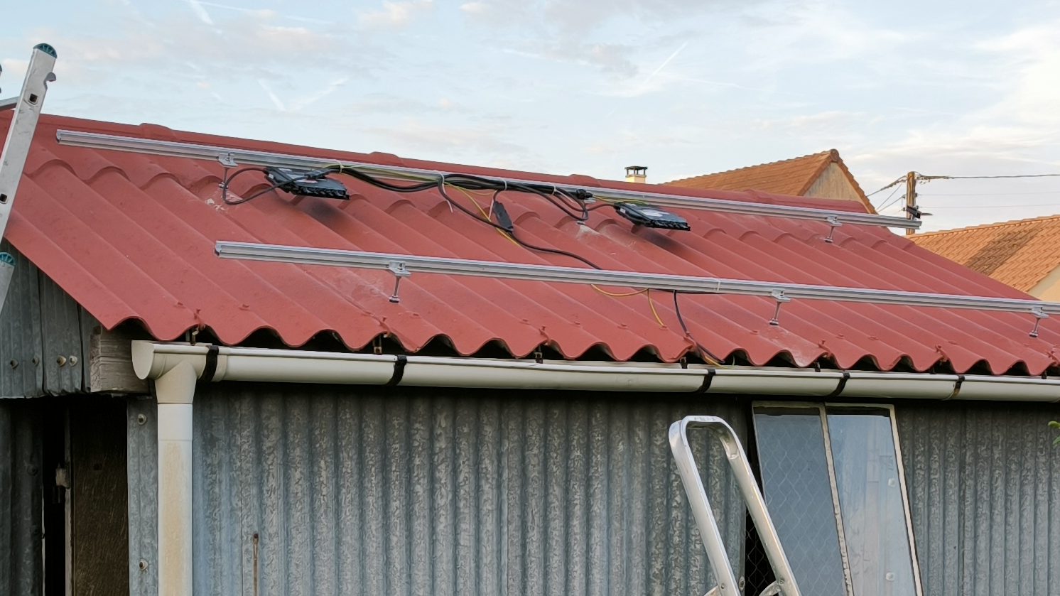 21h30 les onduleurs sont posés, 22h30 les panneaux le sont aussi. On verra demain si ça marche :