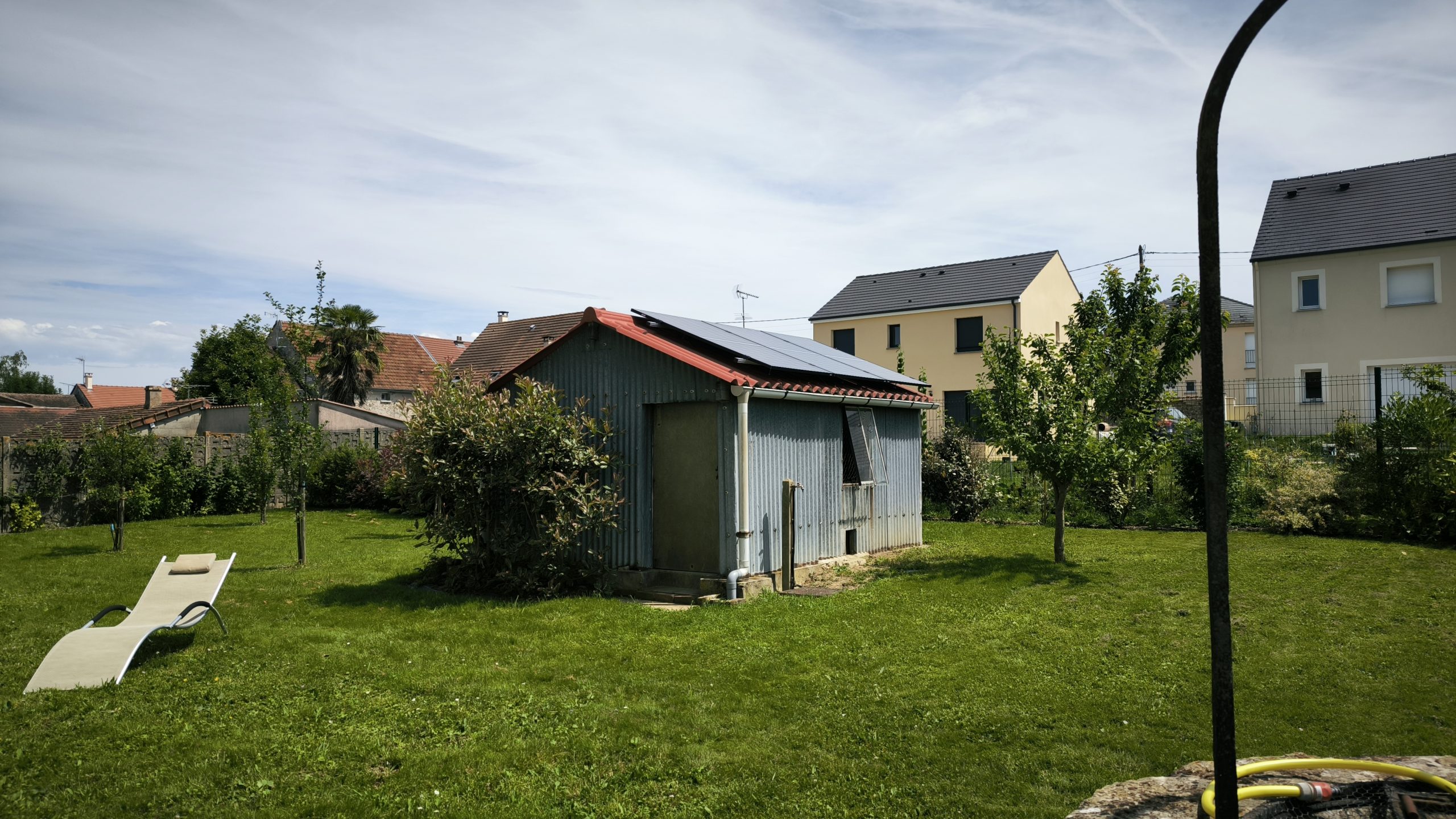Ah oui, remarque importante, j’avais déjà prévu d’amener de l’électricité au cabanon, je vais pouvoir utiliser le câble en attente (3G2,5, suffisant vu le nombre de panneaux).