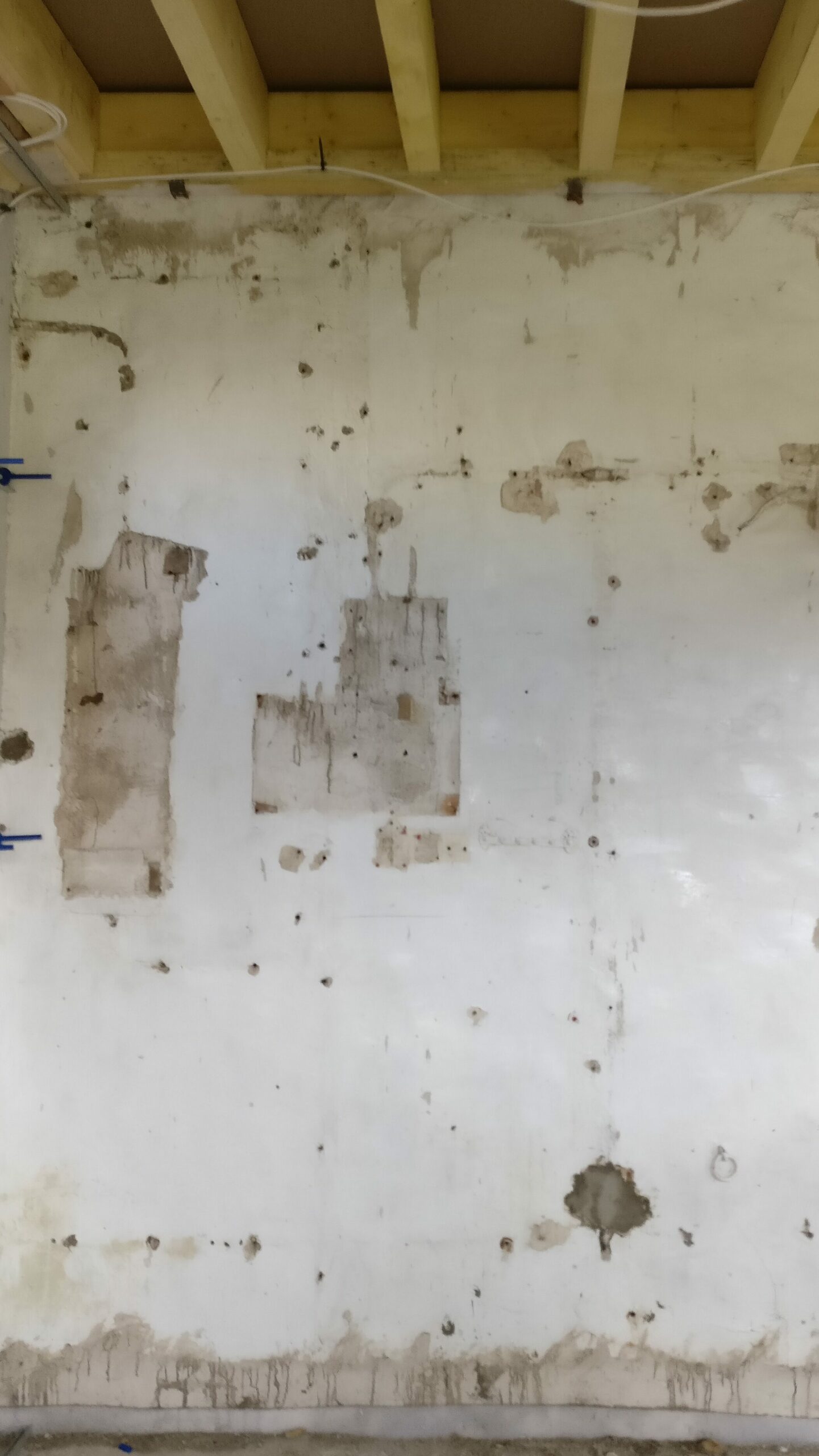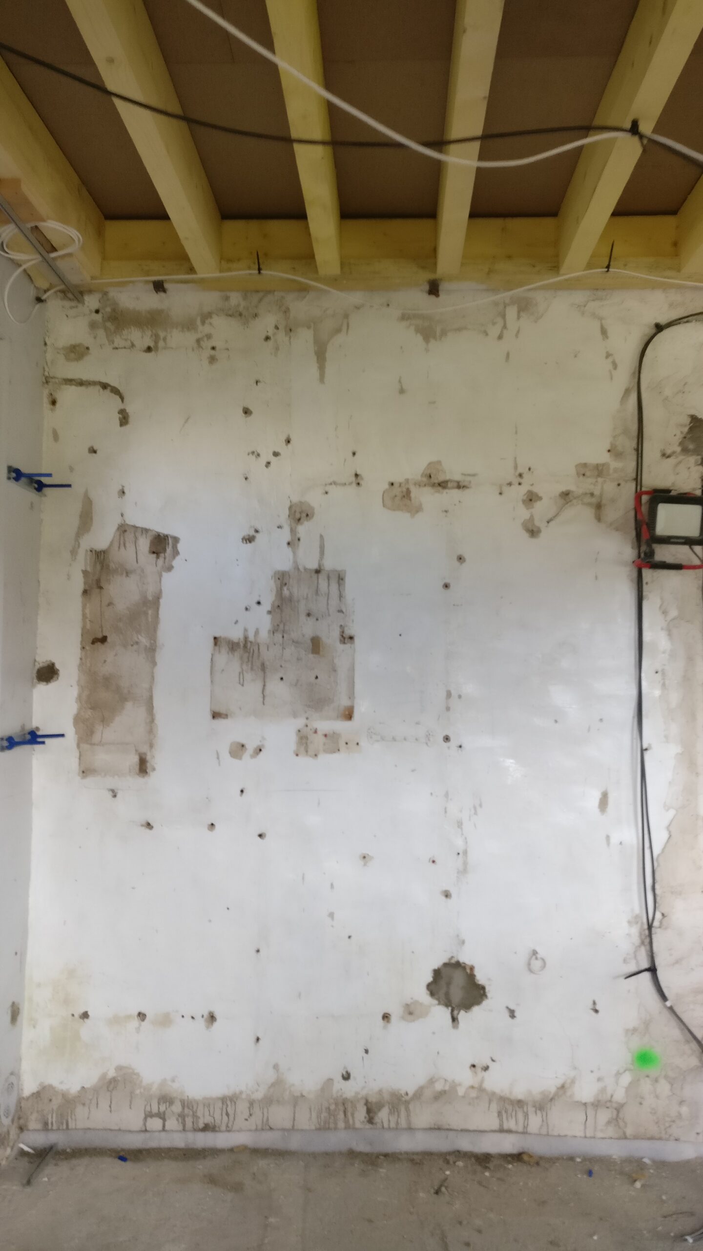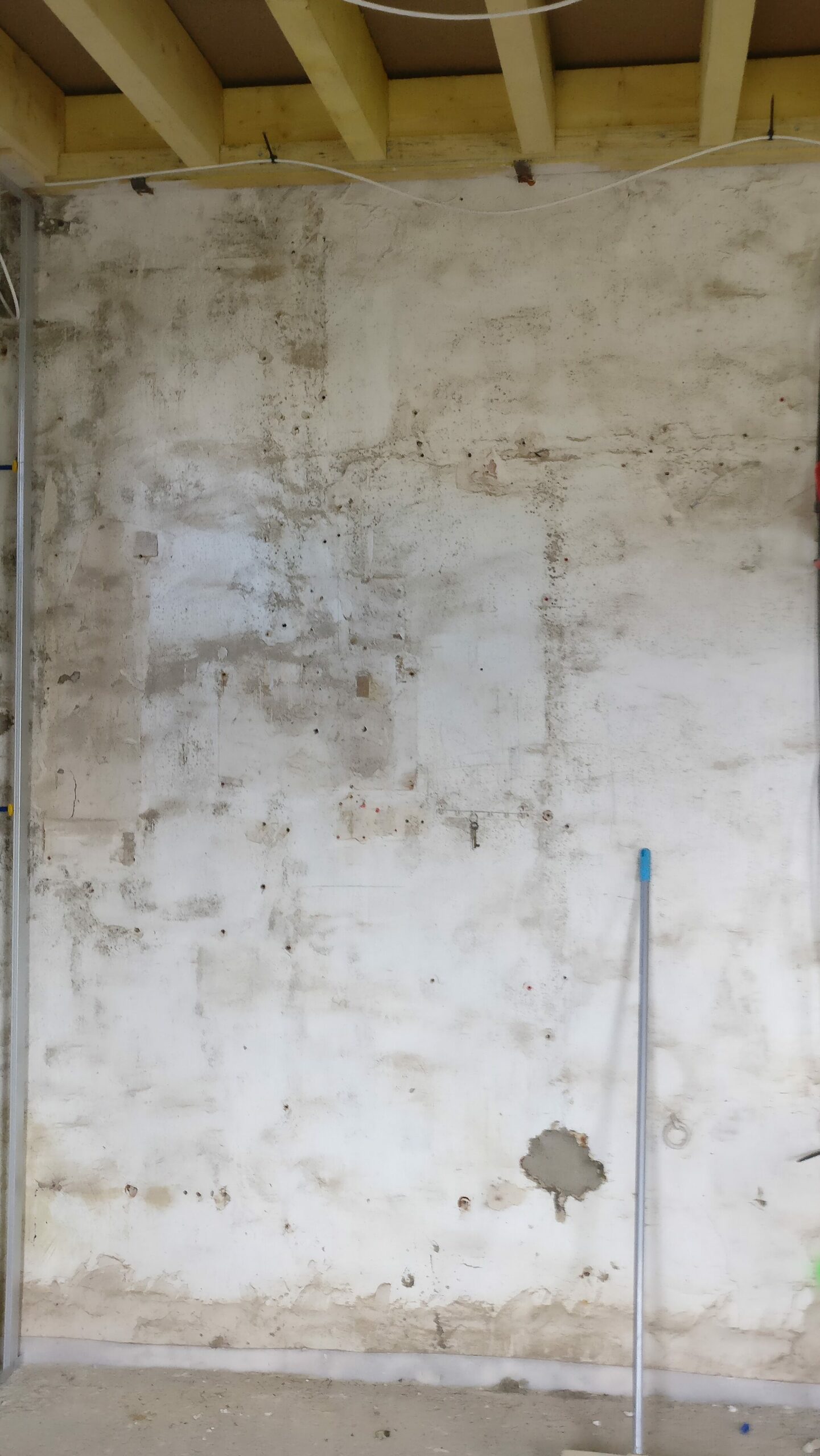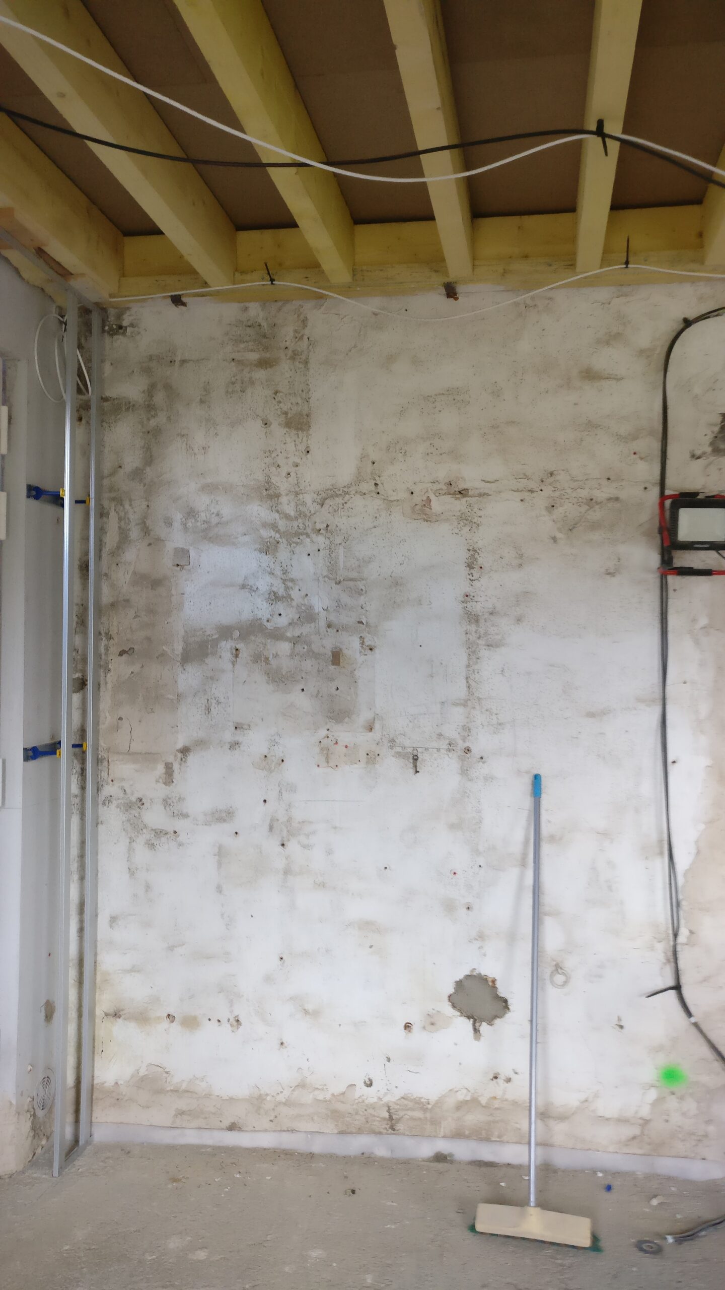 De mon côté j’ai du commencer par un petit lessivage des murs et un bon coup de balai ! Il faut dire qu’après la création de la nouvelle fenêtre dans la pièce juste au dessus, il y en avait partout.. et que les moisissures avaient bien appréciées l’humidité générée par le séchage de la dalle :