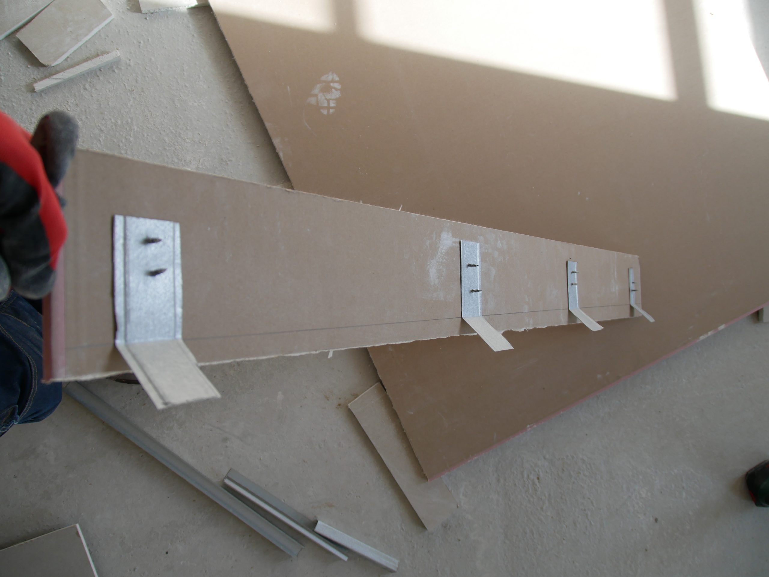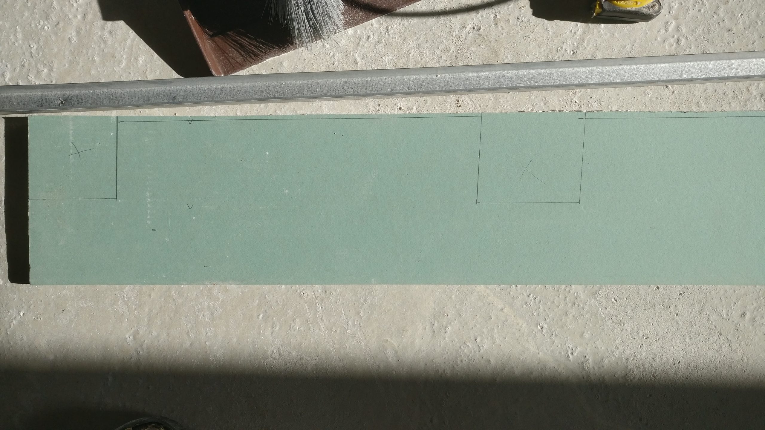 Étape 2 : Prendre les mesures (et les angles des poutres avec une fausse équerre) et le reporter sur un bout de placo.
