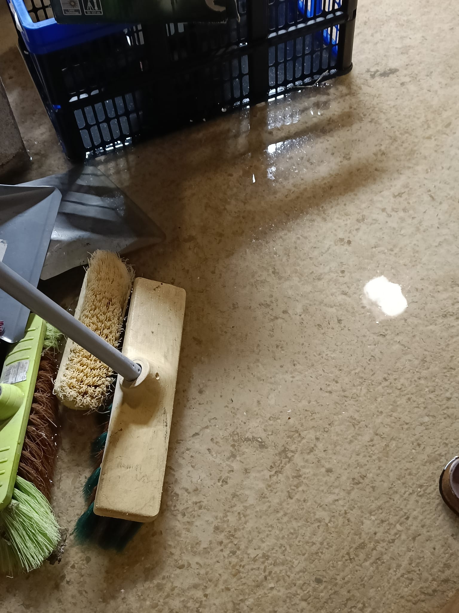Tout baigne dans 2 a 3cm d’eau. Je vais voir dehors sur la route : rien, le regard est vide de toute eau. Je remonte près de la maison au niveau de la gouttière et là il y a plus de 50cm d’eau : conclusion l’eau ne traverse pas la cours et en cas de forte pluie ça remonte… l’évacuation est donc coupée, sûrement quand le terrassier a creusé la cours il y a 3 ans pour passer la nouvelle évacuation ainsi que l’eau et l’électricité vers la dépendance. OK. ça a été fait en 2 fois…. et c’est où maintenant dans la cours ??