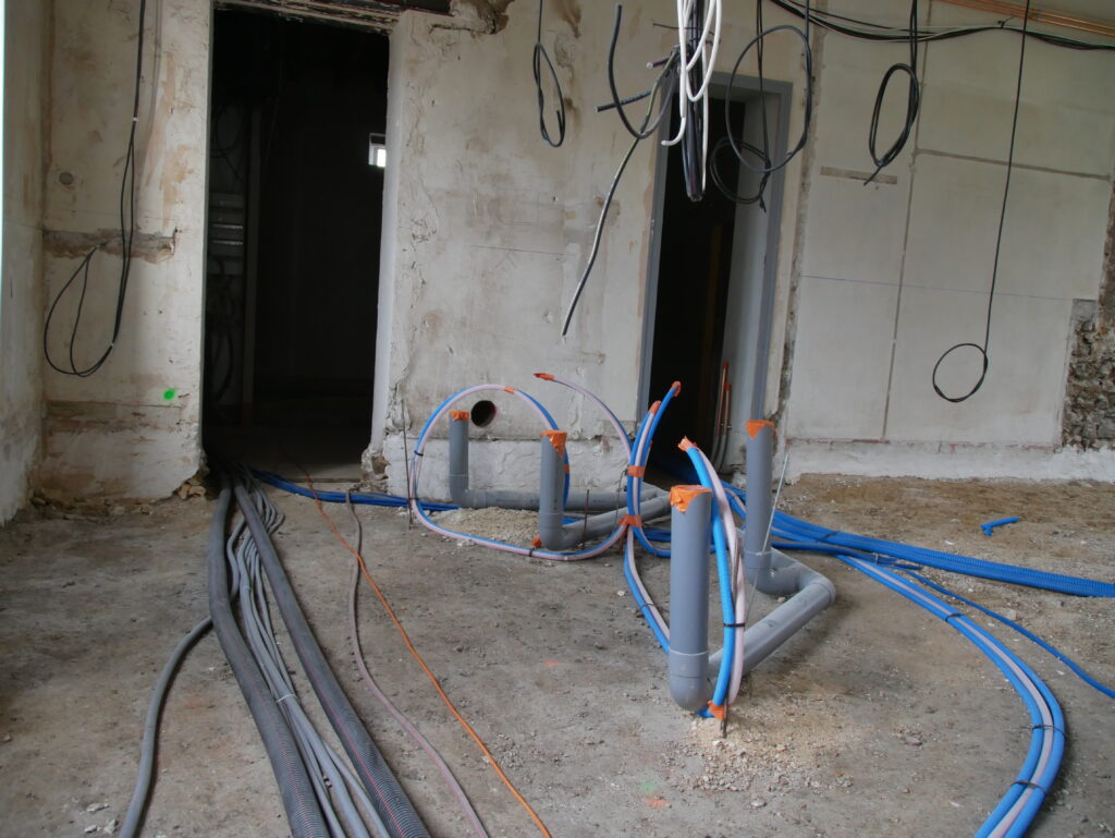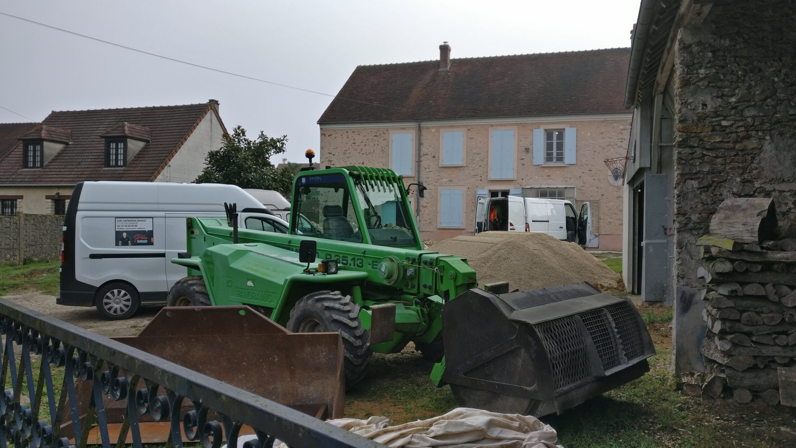 Aujourd’hui ça a été le défilé dans la maison car il faut absolument passer tout ce qui doit être coulé dans la dalle du rez de chaussée (toutes les pièces sont concernées).