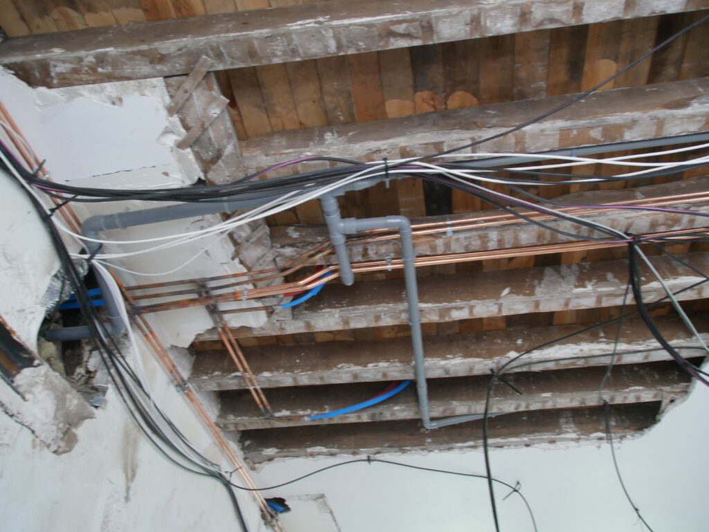 – Celle de l’électricien qui ne fait passer dans la dalle que ce qui doit ressortir en milieu de pièce et qui prends trop de place et puis « si on oublie quelque-chose on passera par les doublages, ne vous inquiétez pas monsieur »