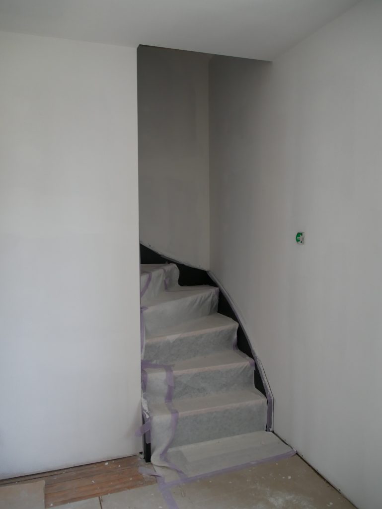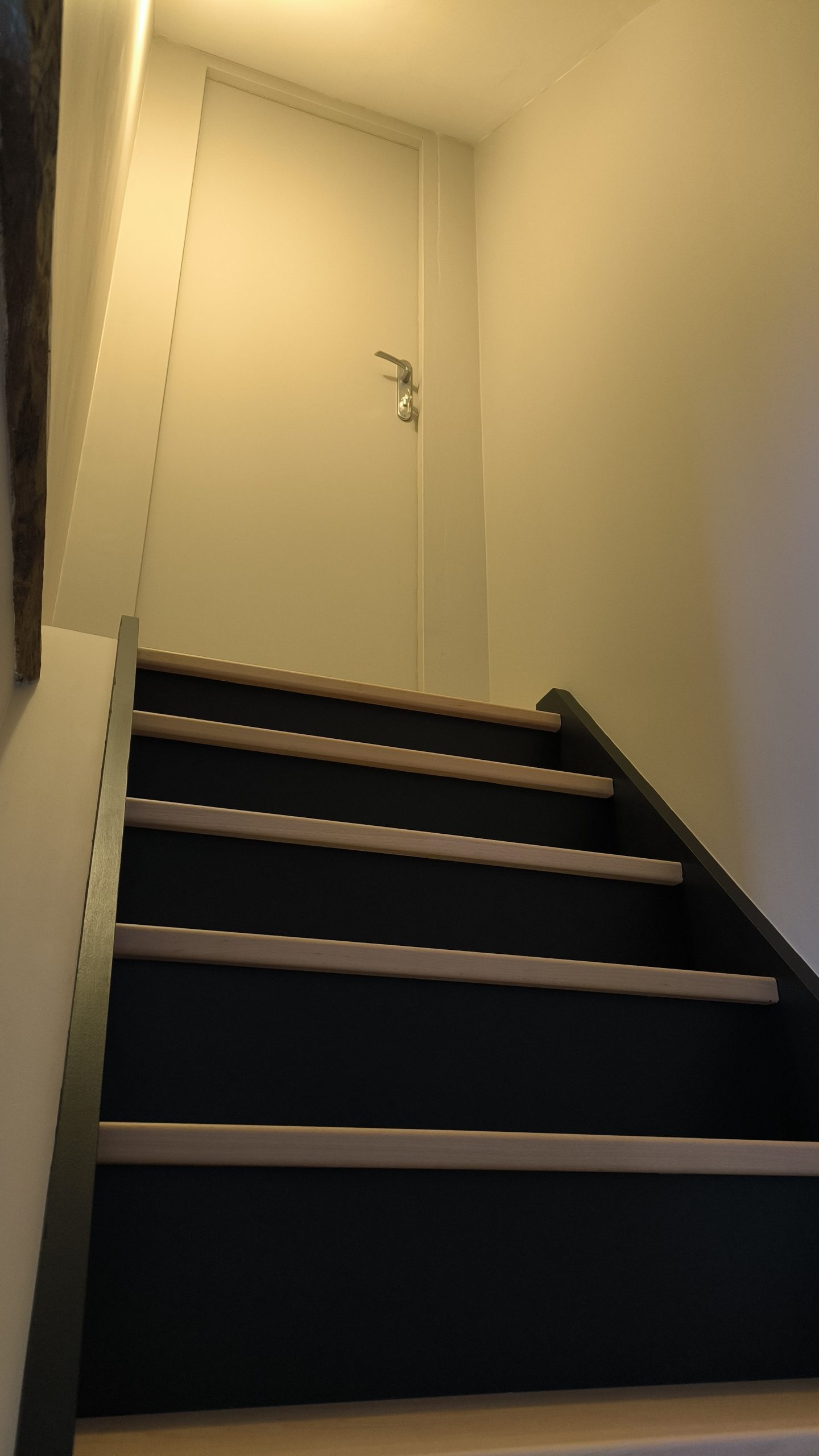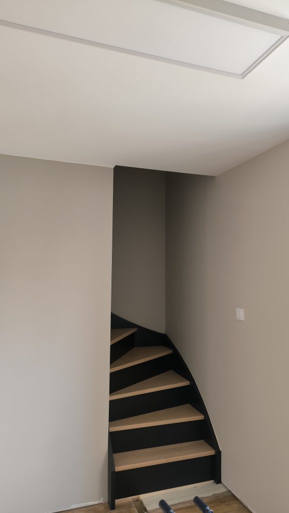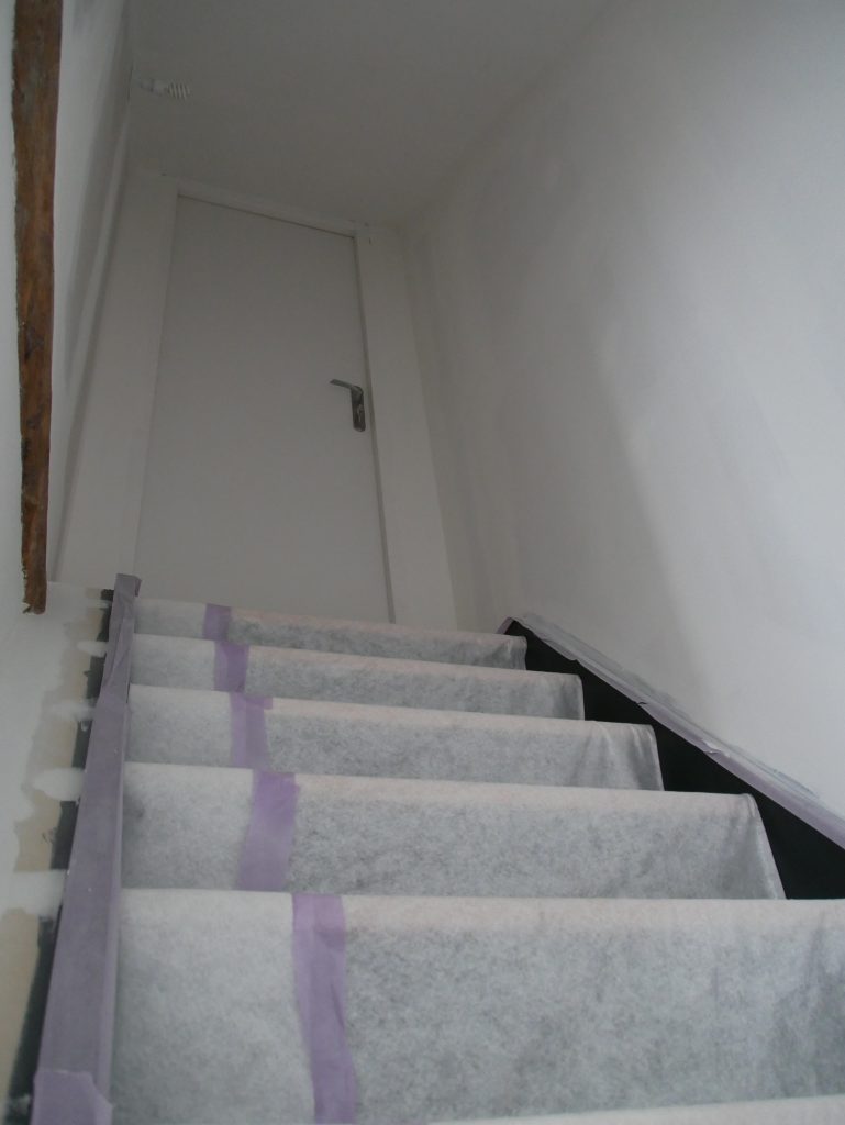 Dans le bureau individuel le peintre a peint l’escalier qui mène vers le grenier. Le résultat est vraiment sympa :