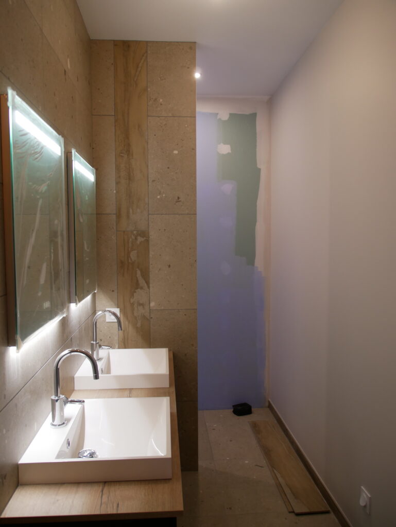 A part la douche où il faut encore poser du carrelage, pour le reste seule la peinture manque encore par endroit.