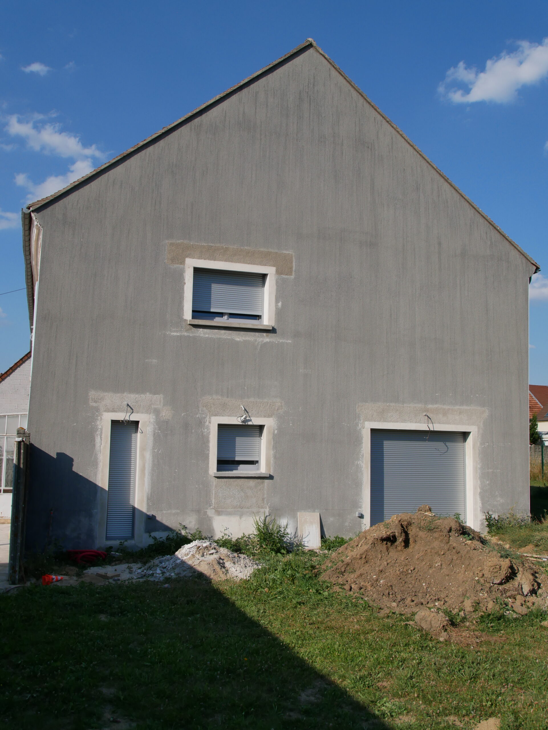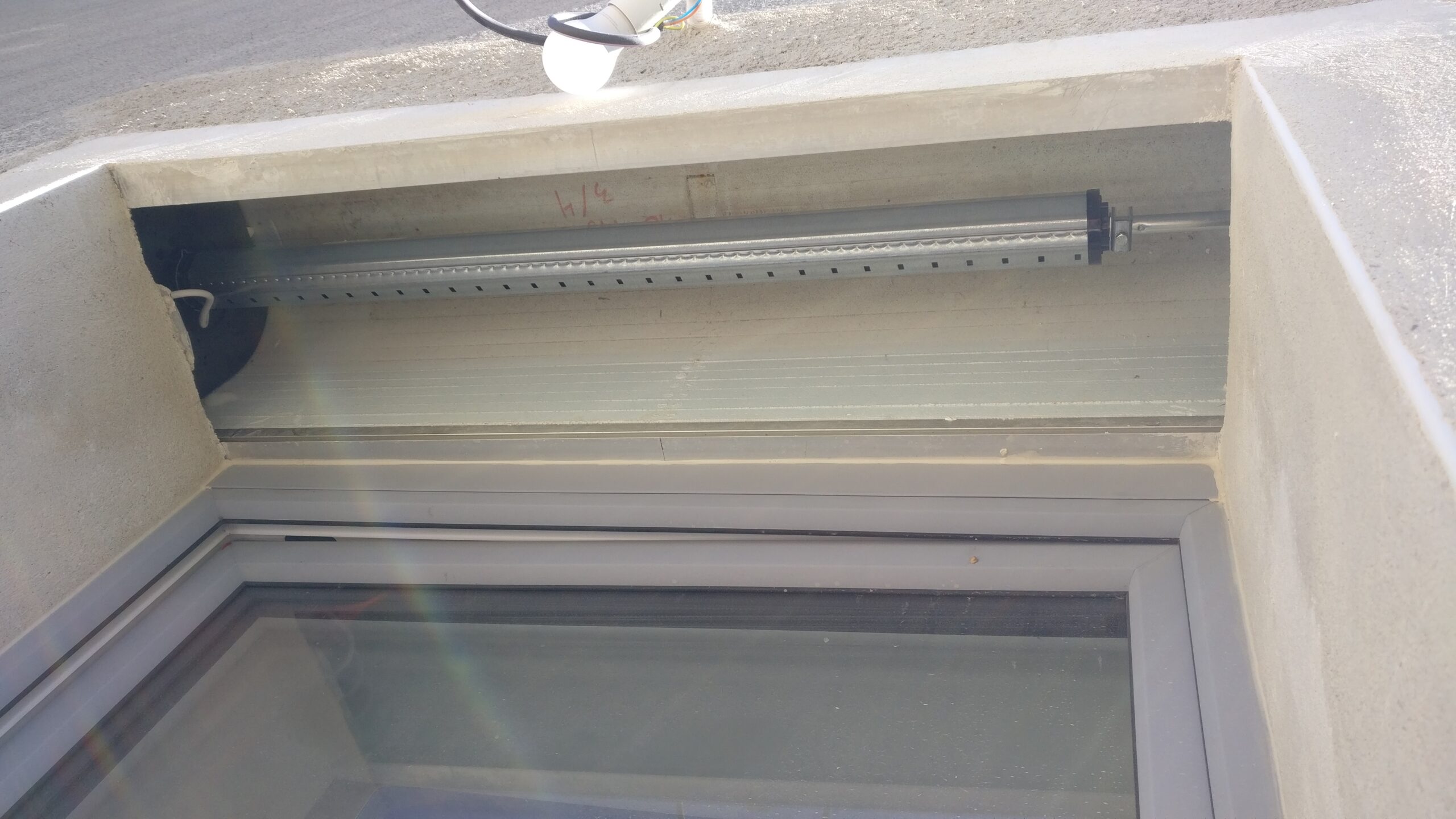 Ça y est, nous avons reçu les volets roulant et l’entreprise est venue les poser aujourd’hui. Au programme pose et réglage des 8 volets de la façade arrière et des 4 de la façade SUD. Pour chaque pièce l’électricien a prévu une boite de dérivation dans l’angle du volet et j’avais fait le nécessaire pour laisser le tout accessible après la pose des placo. L’installation n’a pas été trop compliqué sauf pour un volet qui c’est révélé être trop large… En fait la maison est ancienne et rien n’est droit. Les tableaux extérieures sont en V, ce qui fait que le tablier du volet rentrait mais pas le caisson qui est plus profond. Ils ont du recouper le volet et le tablier sur place.