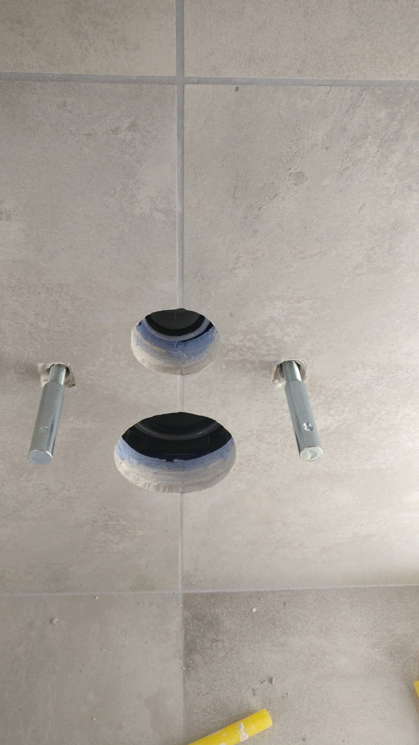 Ensuite un joint silicone sur le pourtour du wc et il ne reste qu’à l’enquille sur les 2 tiges métalliques recouvertes du mécanisme spécifique au wc acheté et serrer.