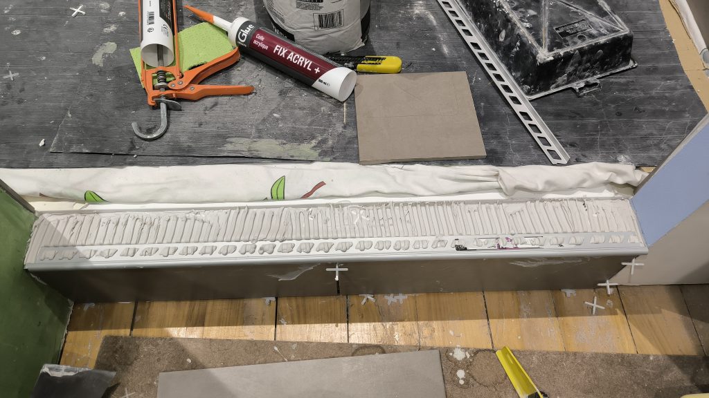 Le lendemain je me suis attaqué aux joints. L’idée est de tout finir avant de mettre définitivement la baignoire… Ça sera moins facile d’accès après !