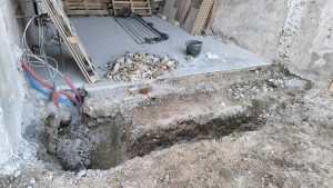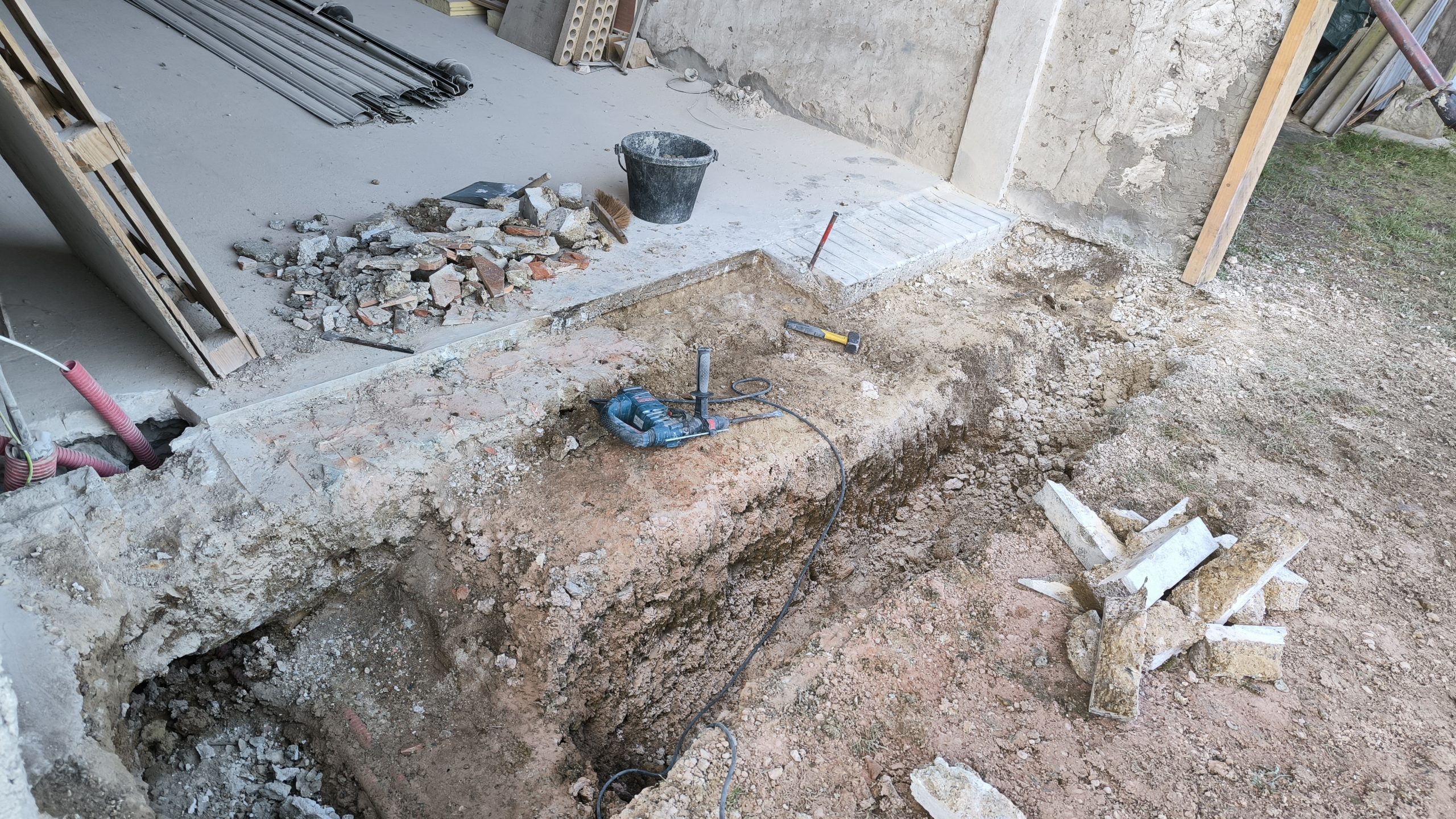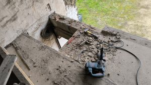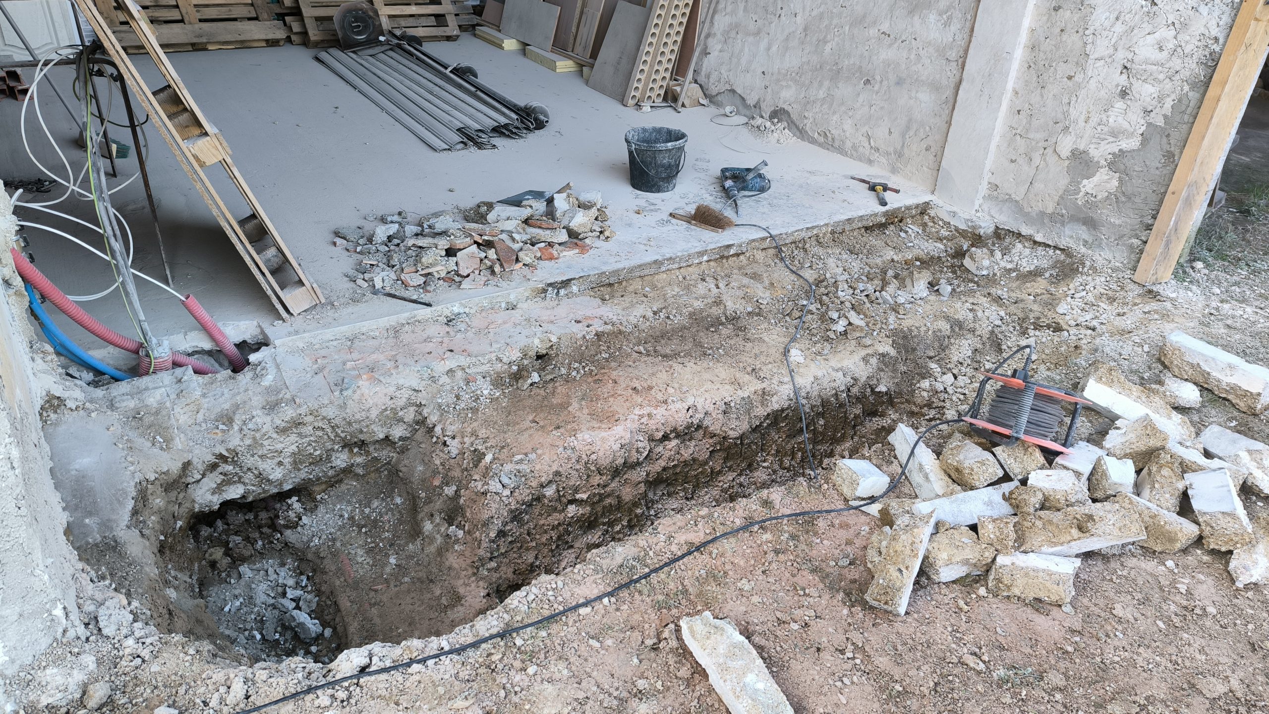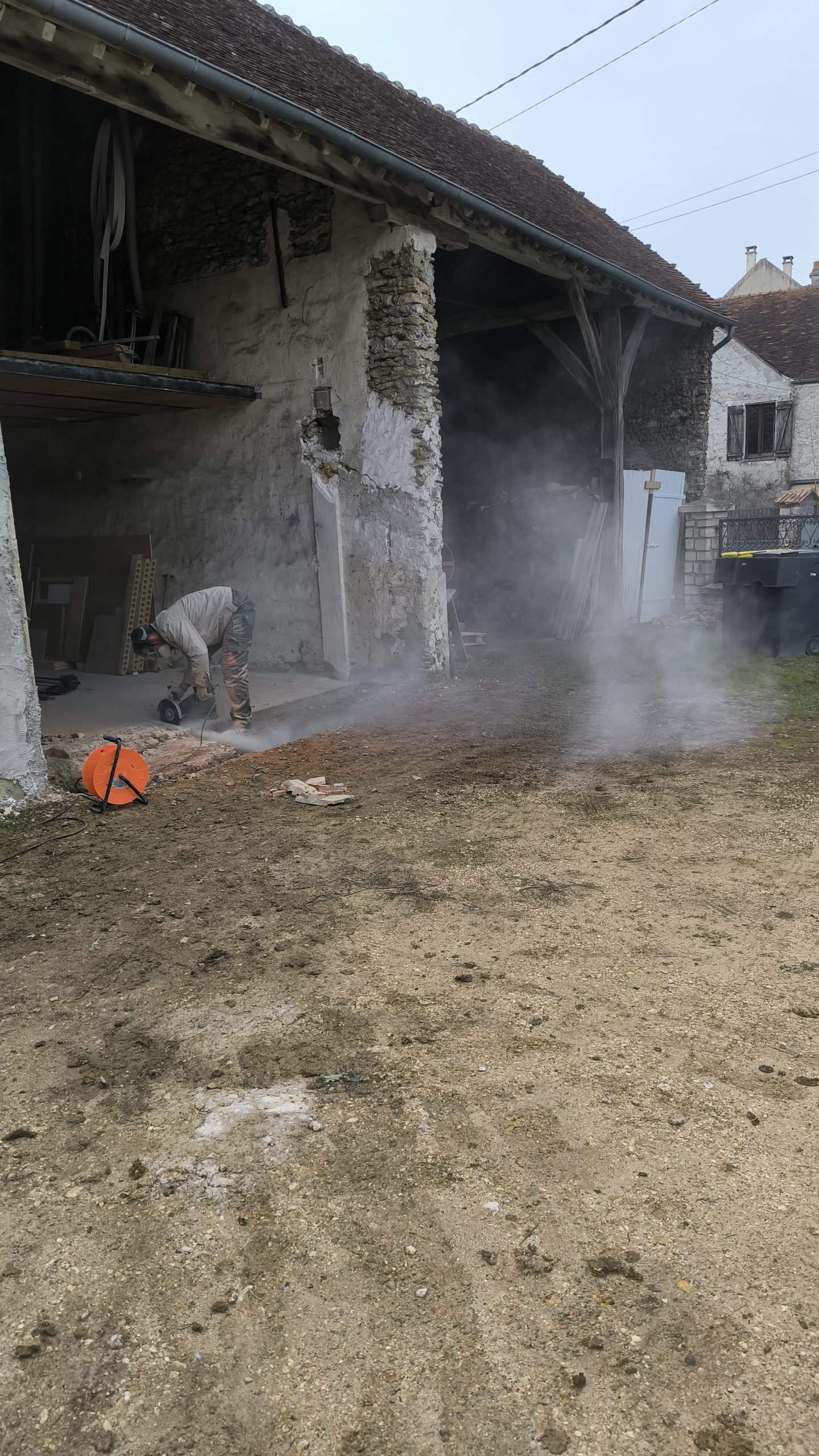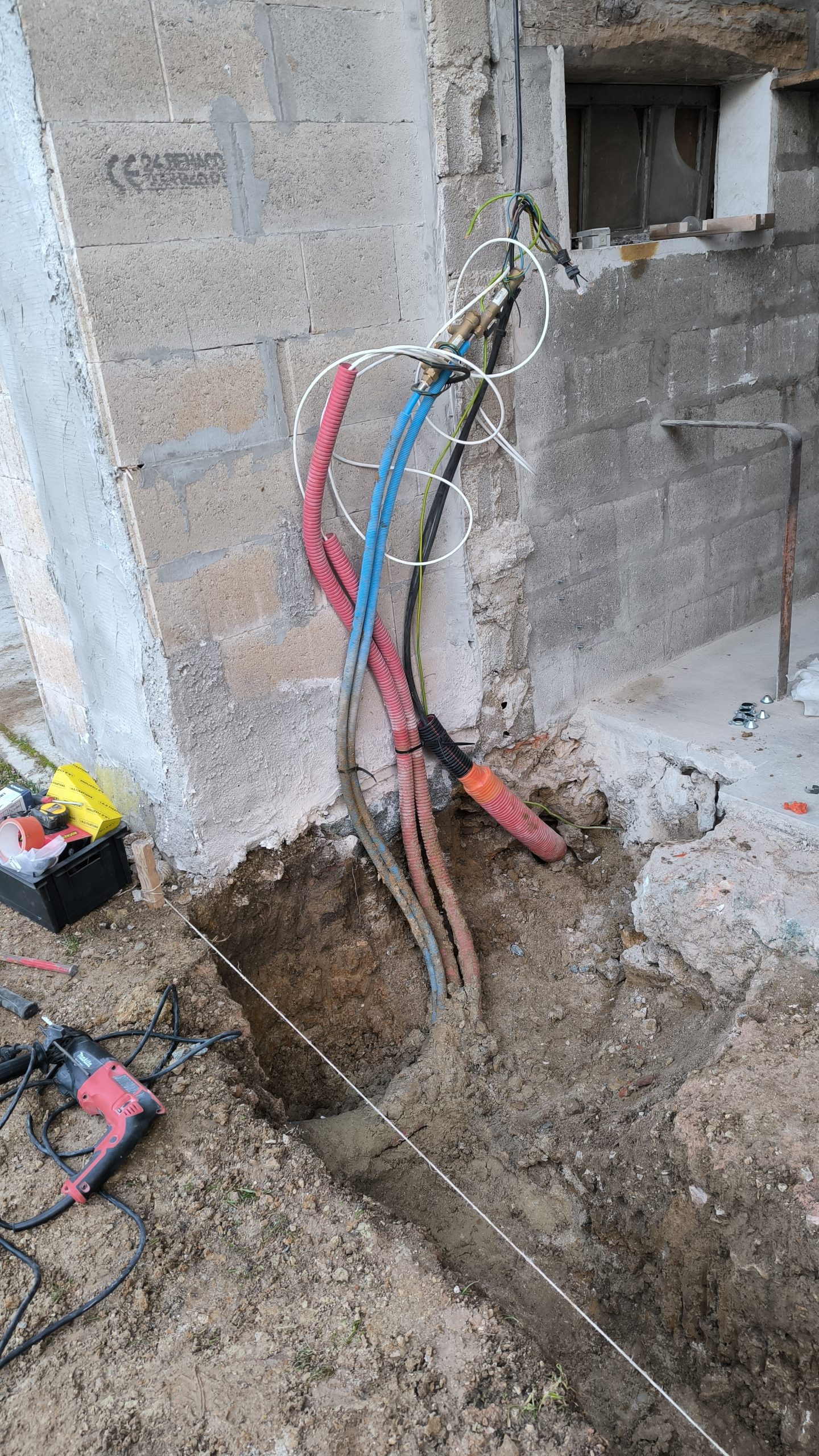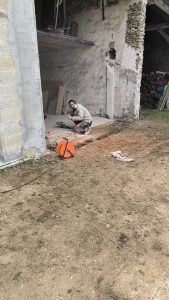 Je dois m’occuper des réseaux mais pour ça il faut que je casse la fondation en ciment et pierre qu’il y a devant. C’est du solide !