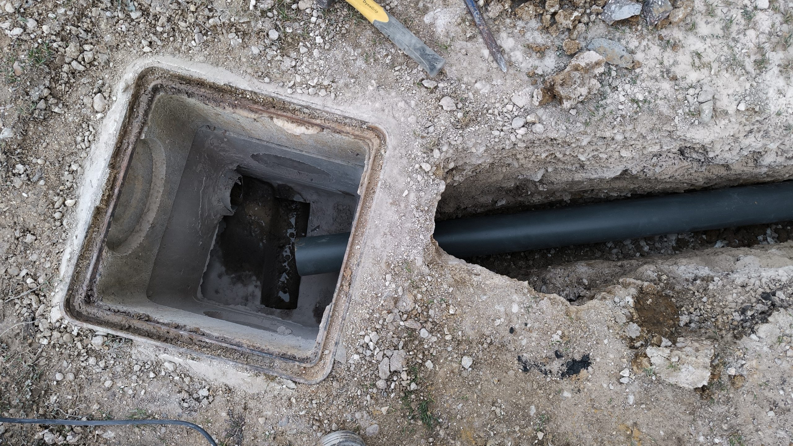 Heureusement dans la cours le regard n’est pas très loin et j’ai pu creuser à la pioche assez facilement (50cm de profondeur) :