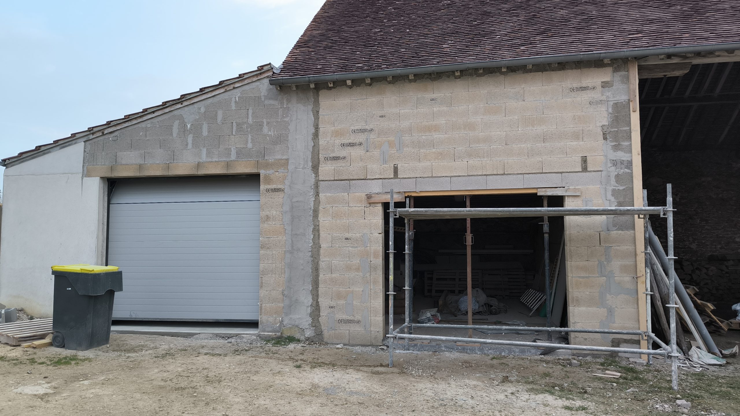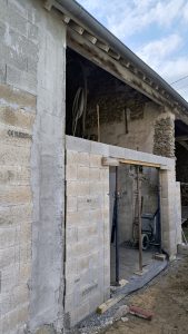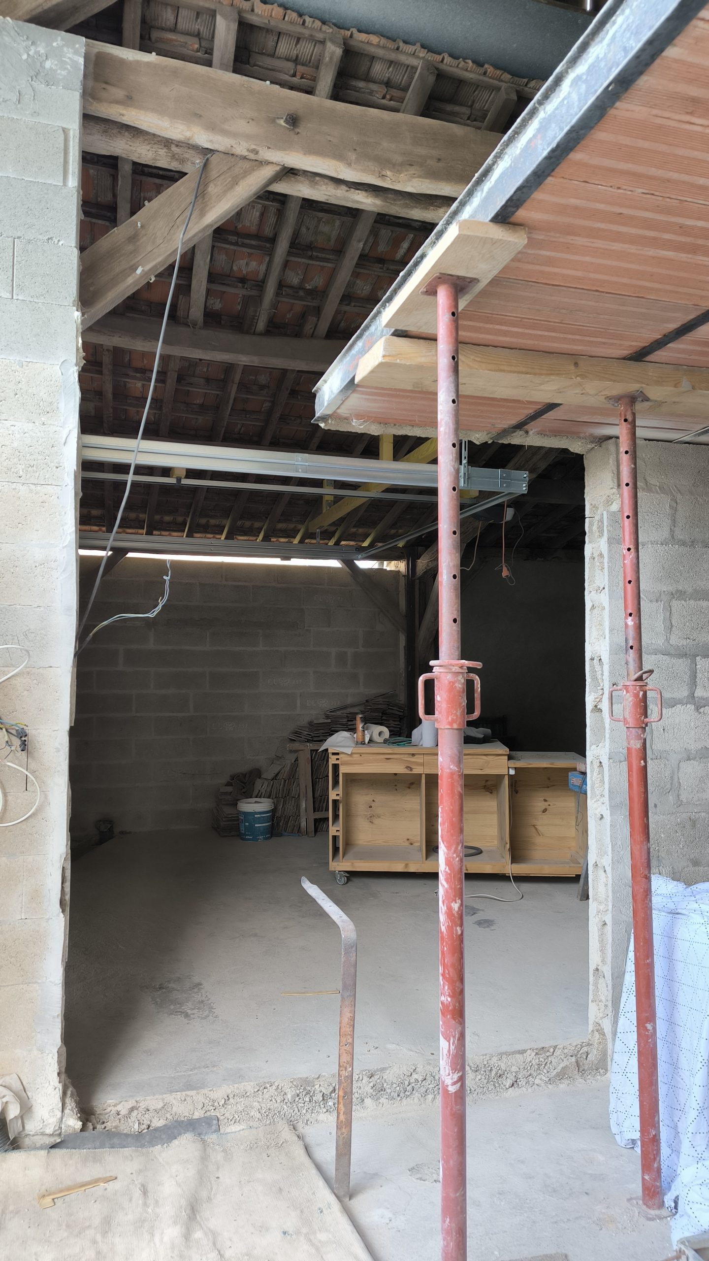 – Ouvert entre les deux garages : nous allons y installer une porte de communication ainsi qu’un escalier (celui qui est actuellement dans l’entrée de la maison, en temporaire)