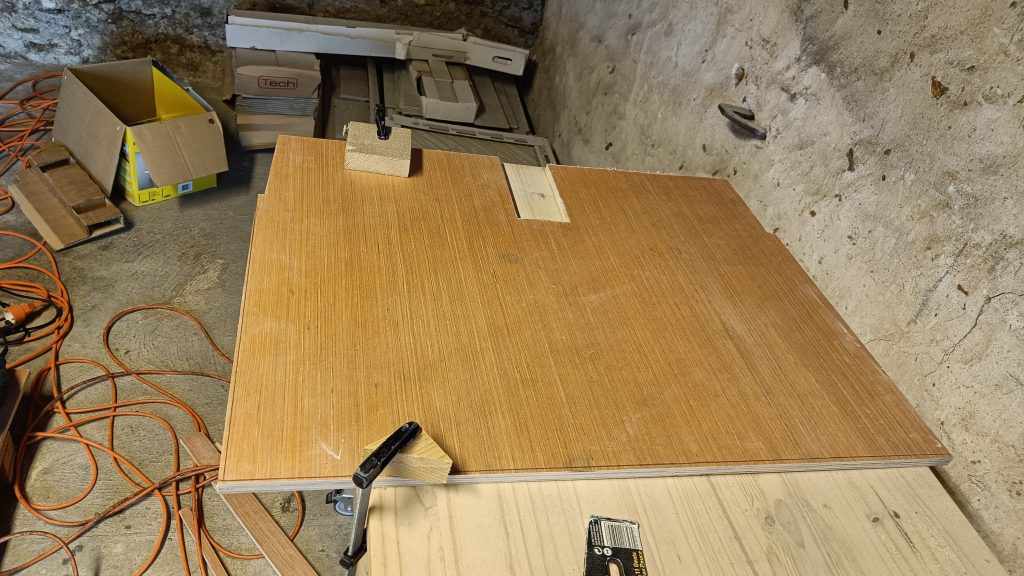 - Un panneau bois pour accéder à la VMC (les chutes des tablettes du précédent chantier iront très bien).