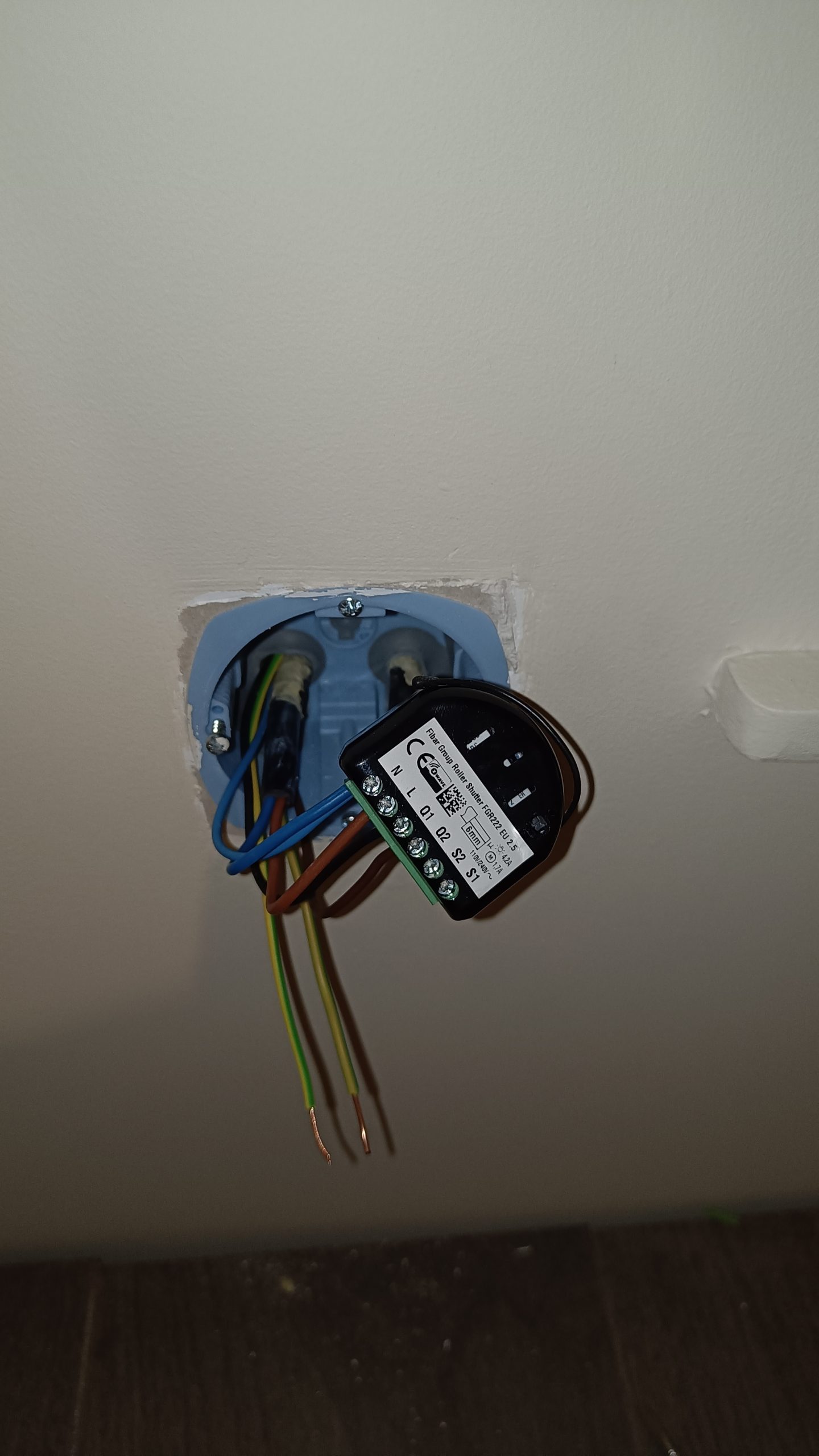 La société est donc venu installer les volets le 5 Janvier dernier. J’ai ensuite pris un peu de temps pour fixer les modules Fibaro pour pouvoir les domotiser. En bas, je n’ai pas brancher les volets du couloir sur l’IPX, car, rappelez-vous, j’avais prévu une commande pour 2 volets sur le même canal… ce qui ne marche pas. J’avais donc du utiliser deux canaux sur l’IPX et bidouiller dans le mur pour faire marcher le tout. Conclusion : je n’ai plus de place sur l’IPX pour les deux volets d’en bas.
