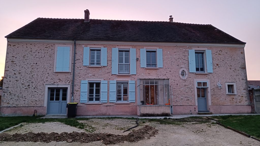 Cet été nous avons décidé de faire de même avec la façade principale de la maison, à la différence près que nous n’allons pas retirer les anciens volets bois mais les repeindre. La façade est quand même plus jolie avec des volets bois, même si actuellement, vu leur état, ce n’est pas vraiment le cas….