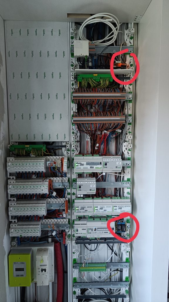 Ah si, au passage vu que j’étais dans le tableau électrique, j’en ai profiter pour rebrancher l’arduino et y mettre une petite alimentation dédiée sur rail din. Avec l’arduino je récupère les données du compteur électrique en direct et les températures extérieur, du réseau de chauffage au premier (haute températures) et du réseau de chauffage du rez-de-chaussée (basse température).